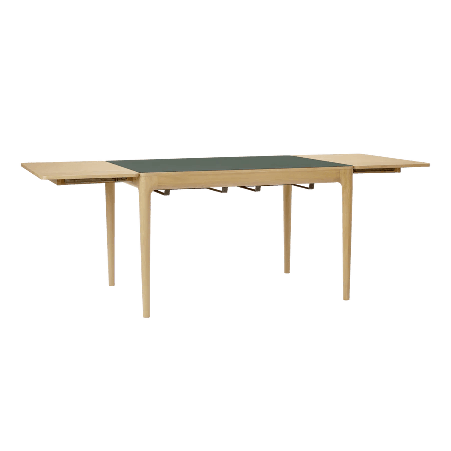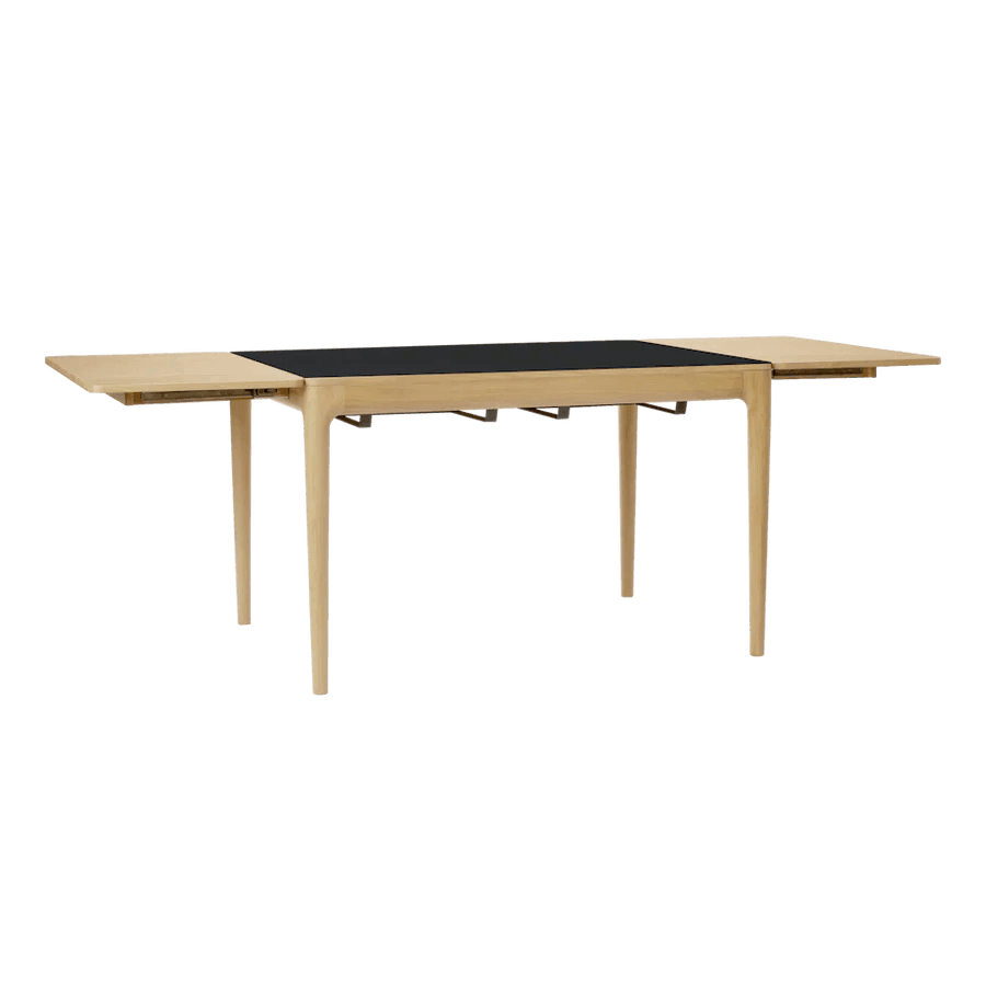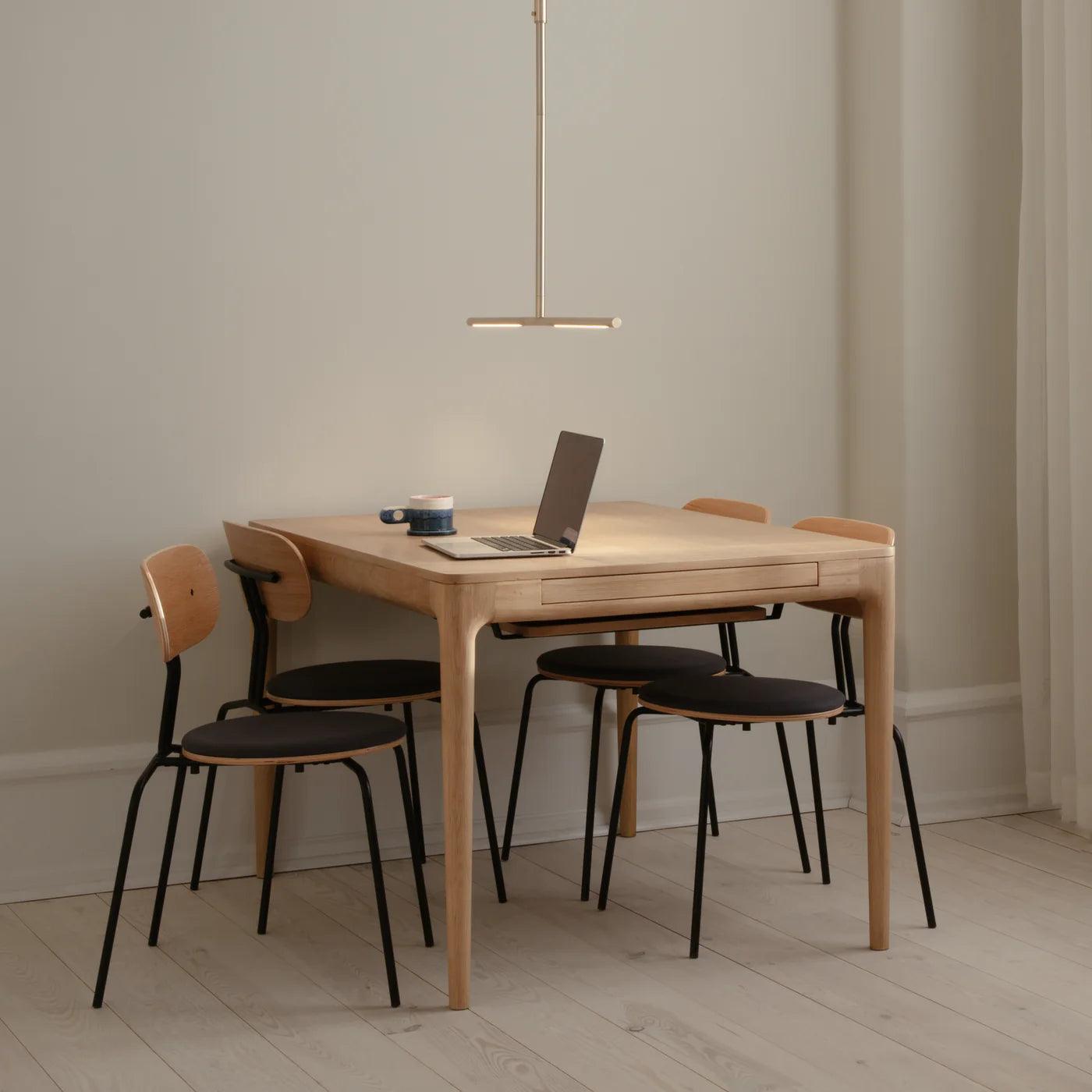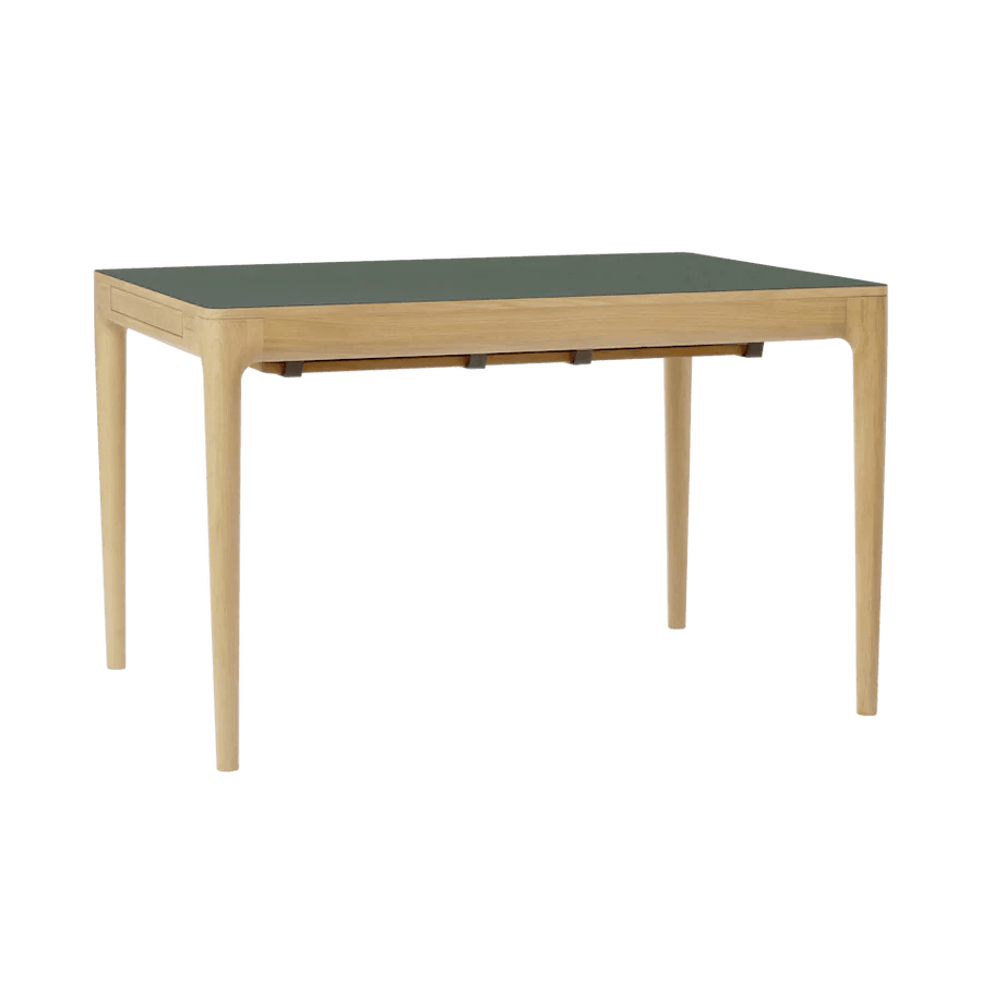 A Heart’n’Soul étkezőasztal az, ahol a forma találkozik a funkcióval. A kihúzható tölgy étkezőasztal karcsú, harmonikus sziluettjével szellős megjelenést kölcsönöz neki az étkezőben. Az étkezőasztal két-két szövetbetétes fiókkal rendelkezik az asztal mindkét végén, ahol gyorsan eltüntetheted a mindennapi élet olykor hátrahagyott szennyeződéseit és nyomait. A két fiók a két bővítőlap tartójaként is működik, így az asztal kihúzott állapotban is stabil. A hosszabbító lemezek az asztal alatt vannak elrejtve – könnyen felhelyezhető vagy eltávolítható. Mérete: 75x120x90 cm, 200 cm-re bővíthető.