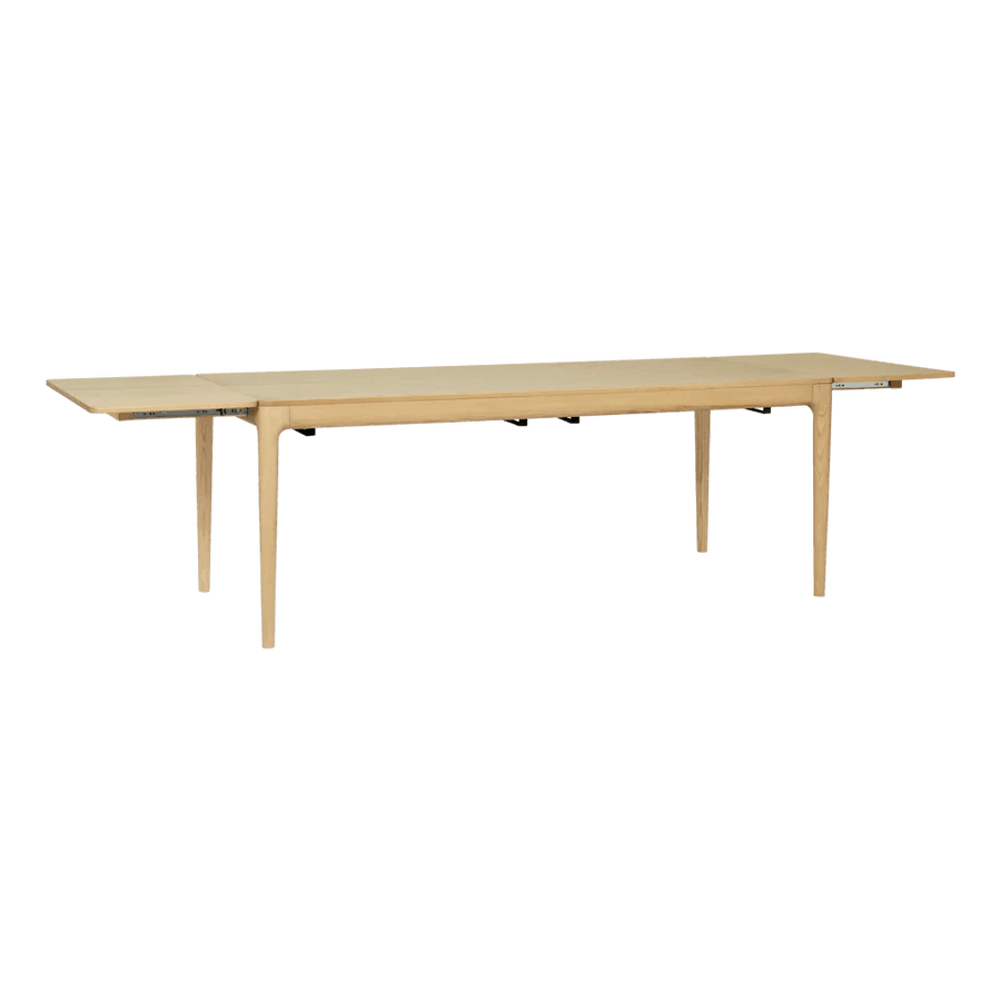 A Heart’n’Soul étkezőasztal az, ahol a forma találkozik a funkcióval. A kihúzható tölgy étkezőasztal karcsú, harmonikus sziluettjével szellős megjelenést kölcsönöz neki az étkezőben. Az étkezőasztal két-két szövetbetétes fiókkal rendelkezik az asztal mindkét végén, ahol gyorsan eltüntetheted a mindennapi élet olykor hátrahagyott szennyeződéseit és nyomait. A két fiók a két bővítőlap tartójaként is működik, így az asztal kihúzott állapotban is stabil. A hosszabbító lemezek az asztal alatt vannak elrejtve – könnyen felhelyezhető vagy eltávolítható. Mérete: 75x200x90 cm, 300 cm-re bővíthető.