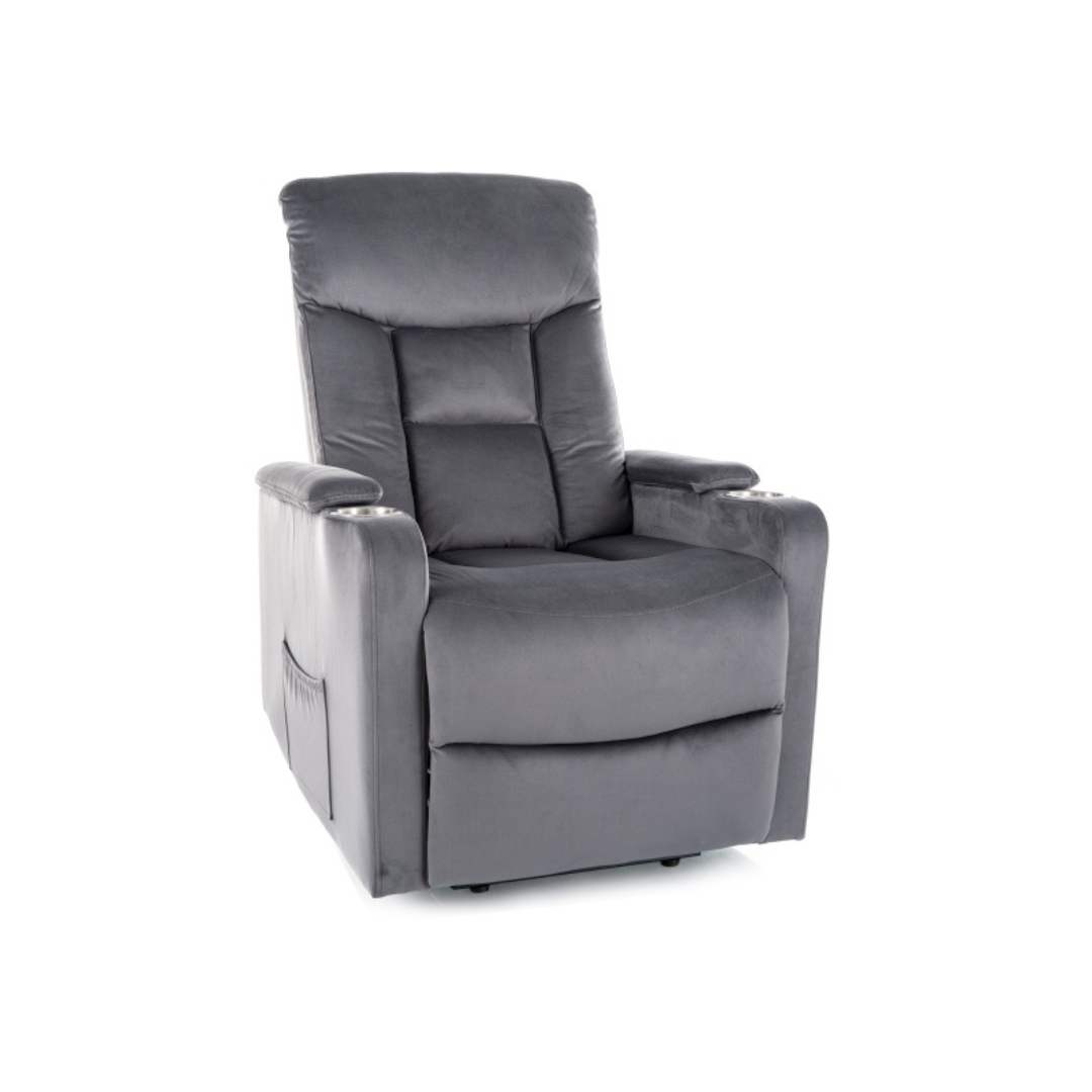Az Ikar fotel egy modern megjelenésű bútordarab, amely ideális otthoni vagy irodai környezetbe. A fotel dönthető háttámlával, felnyitható lábtartóval, és pohártartókkal rendelkezik, így komfortosan pihenhetsz, és könnyedén beállíthatod a legkényelmesebb pozícióba. A fotel sötétszürke vagy világosbarna bársony kárpitozással rendelkezik, ezért könnyen illeszthető a különböző belső terekbe.