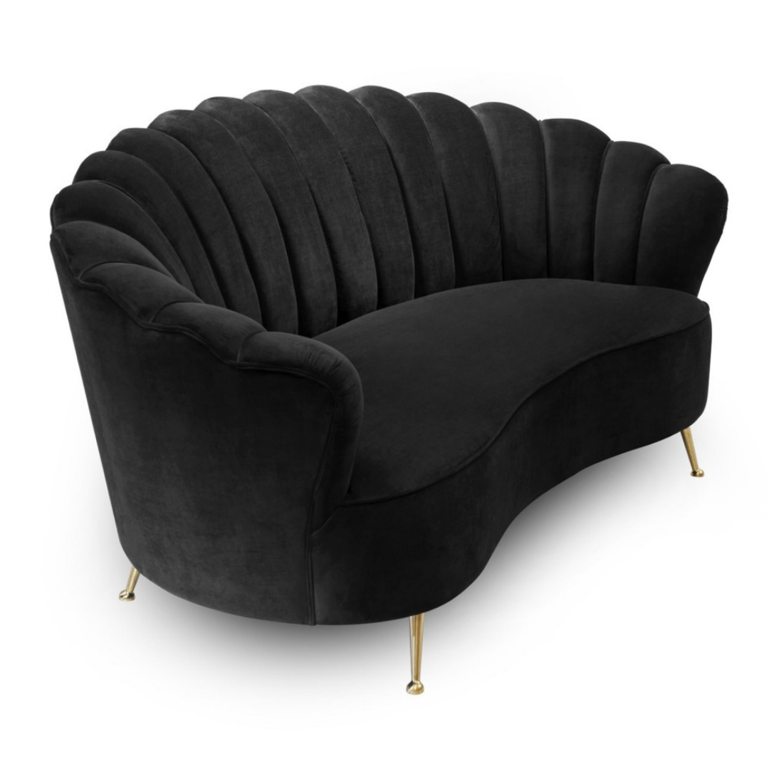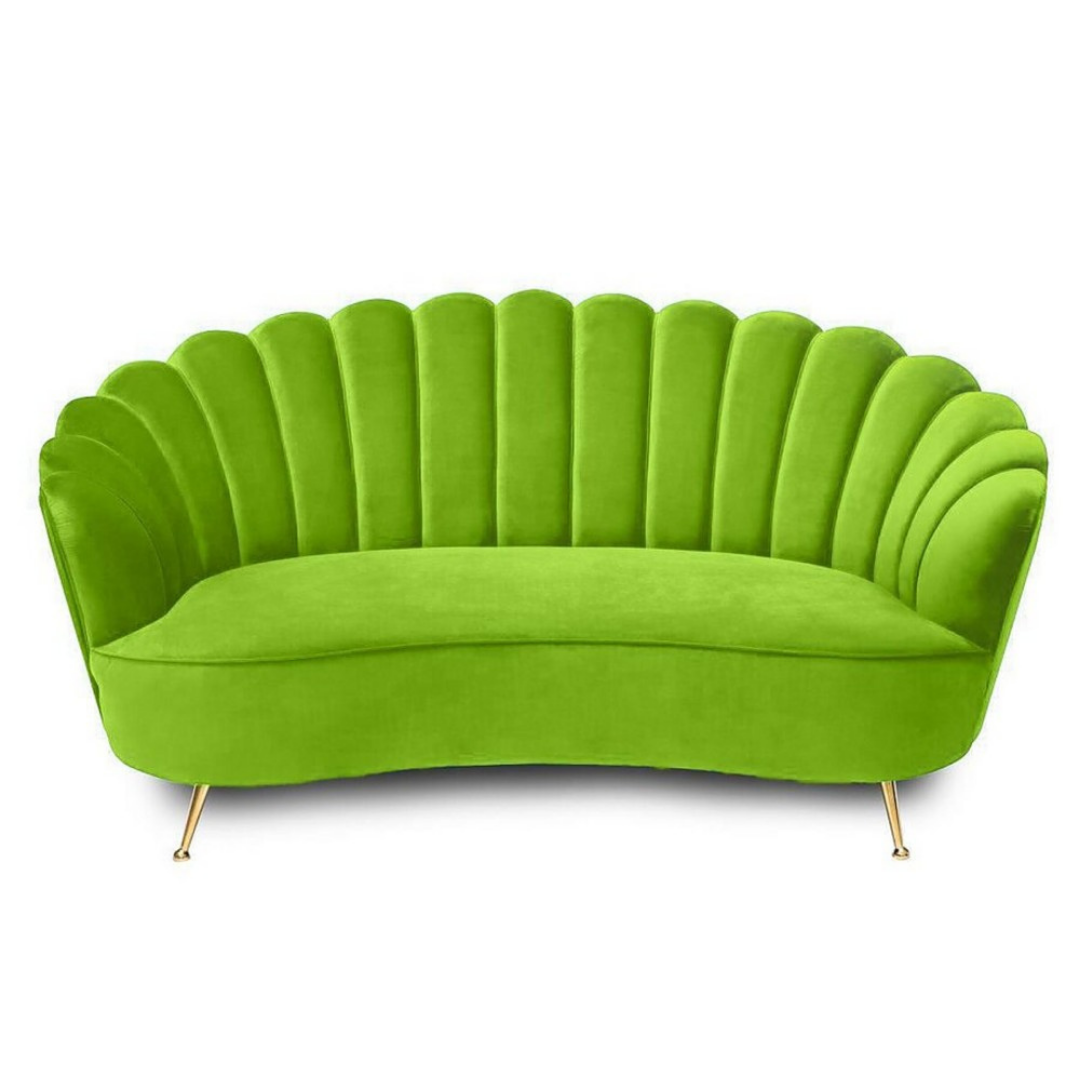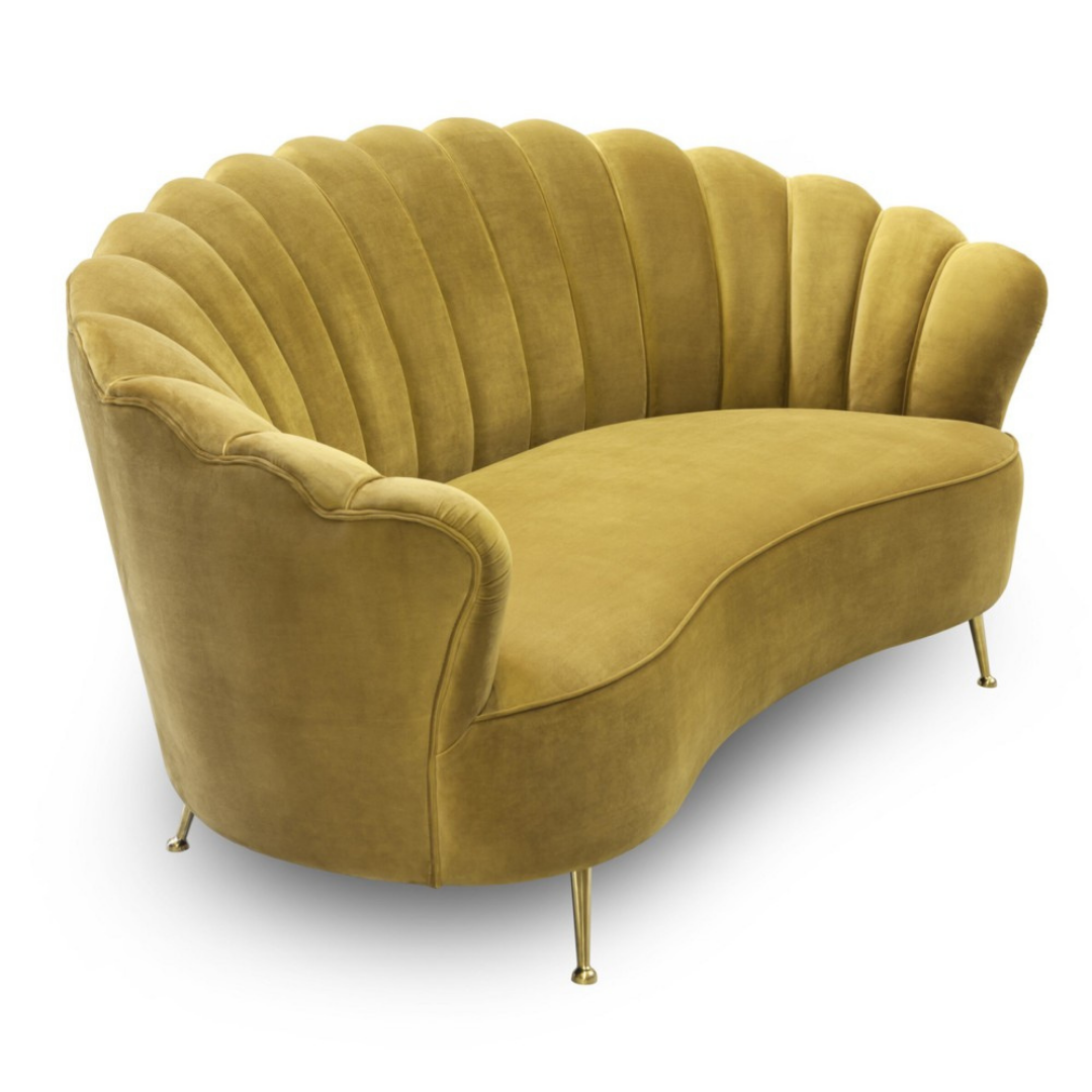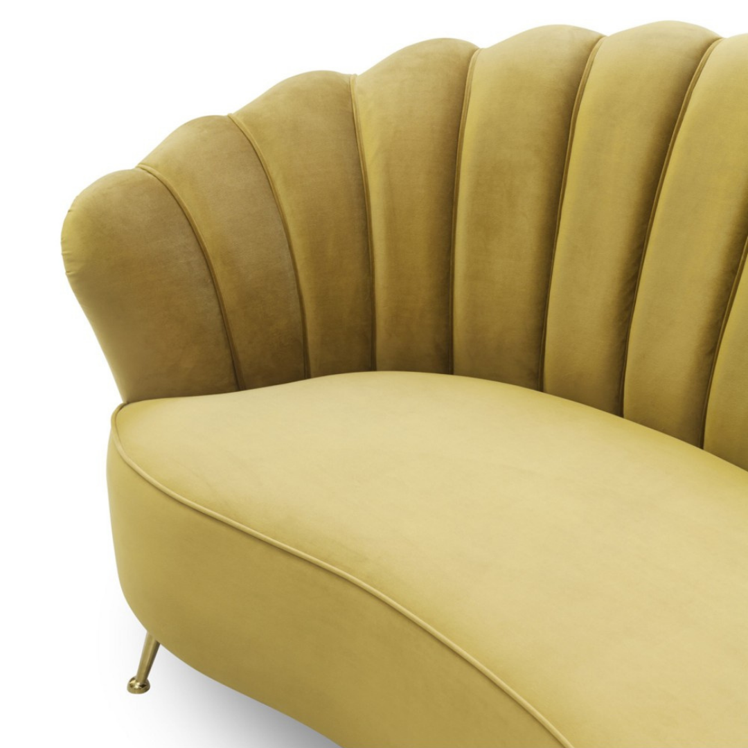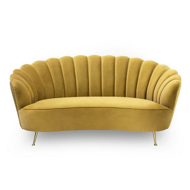 A Katy kanapét elegáns, kagylós formája és luxus kárpitozású, csatornázott háttámla díszíti, amely virágszirmokként öleli körül az ülőfelületet. Kiegyensúlyozott arányai, puhasága és formája tökéletesen kiegészíti a vékony, arany színű lábait, ezzel elegáns hatást keltve. A Katy 2 személyes kanapé sárga, fekete, bordó, világoszöld, és sötétzöld színekben kapható.