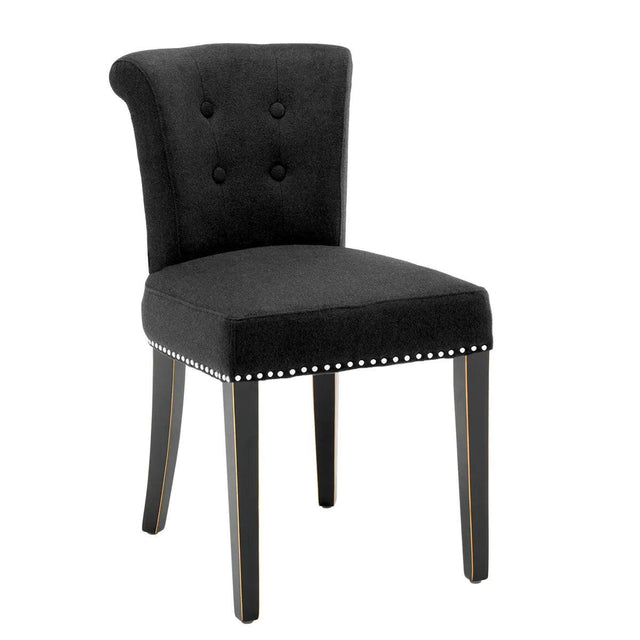 Válaszd a Key Largo étkezőszéket az étkezőasztalhoz, és élvezd a pazar vacsorát barátaiddal és családoddal. A klasszikus stílus modern csavarja, ez a bájos étkezőszék fekete kasmír kárpitozással, nikkel szegecsekkel és fogantyúval, valamint fekete lábakkal tökéletes lehetőséget kínál a luxus szórakozáshoz.