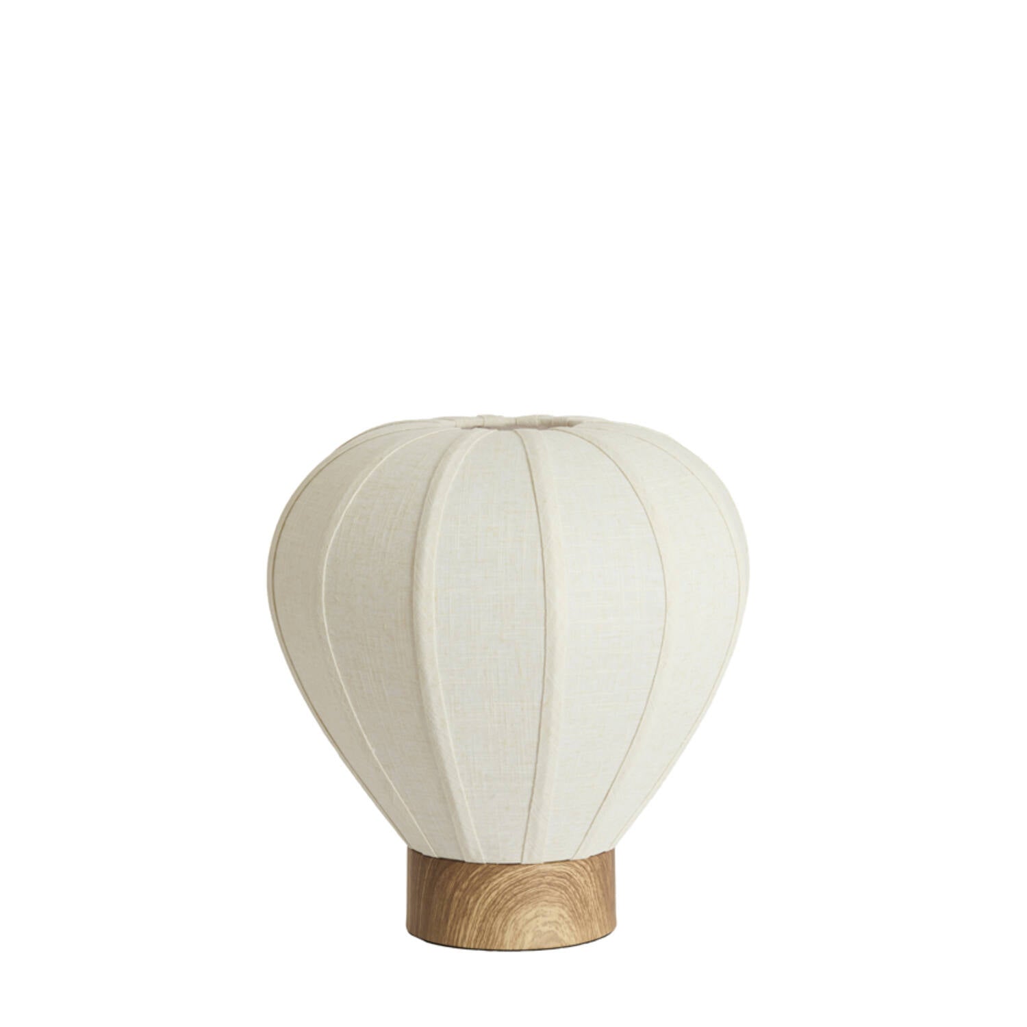 Természetes textúrák: A lenvászon ernyő lágyan szórja szét a fényt, miközben a fa hatású nyomattal ellátott fém váz természetes karaktert és stabilitást kölcsönöz a bútornak.