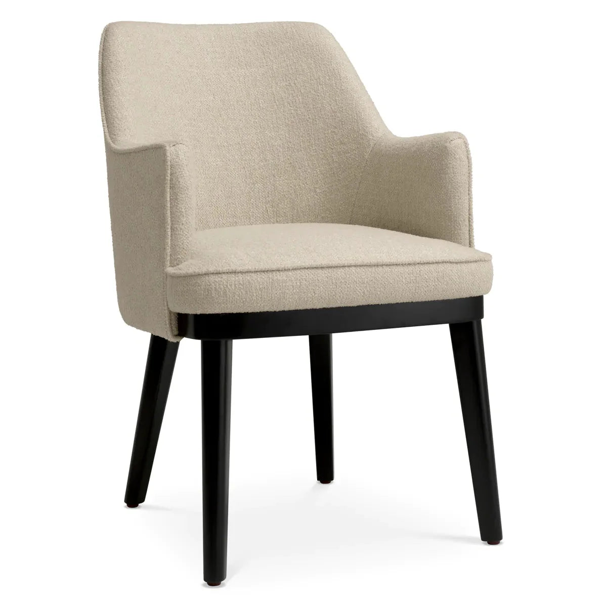 Dobd fel étkezési élményedet a Lavinia Renato Ecru székkel. Ez a fényűző darab elegáns ekrü színű anyaggal büszkélkedhet, amely 51% újrahasznosított poliésztert és 49% poliésztert egyesít, így képviselve a fenntarthatóságot és a stílust. A fából készült lábak kifinomult fekete fényezése kiemeli kifinomult sziluettjét, így tökéletes kiegészítője azoknak, akik értékelik a fényűzést és az igényes dizájnt.