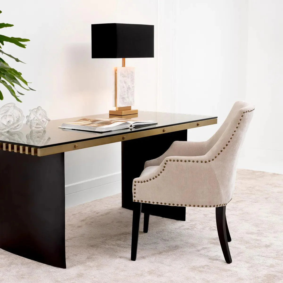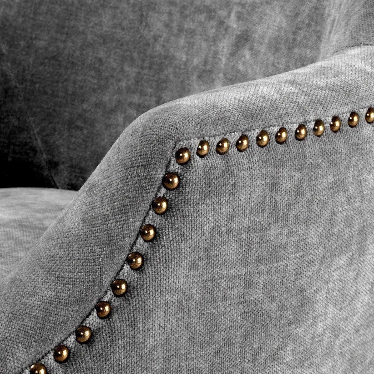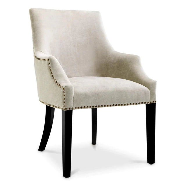 Adj stílusos kényelmet étkeződnek a Legacy étkezőszékkel. Ez a szék elsöprő formájú, és Clarck kárpittal rendelkezik, amely antik sárgaréz szögekkel tűzdelt. A karcsú fekete széklábak teszik teljessé a luxus megjelenést.