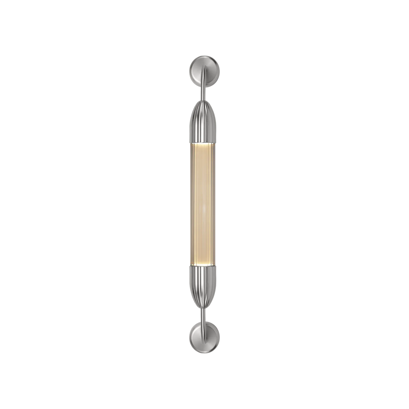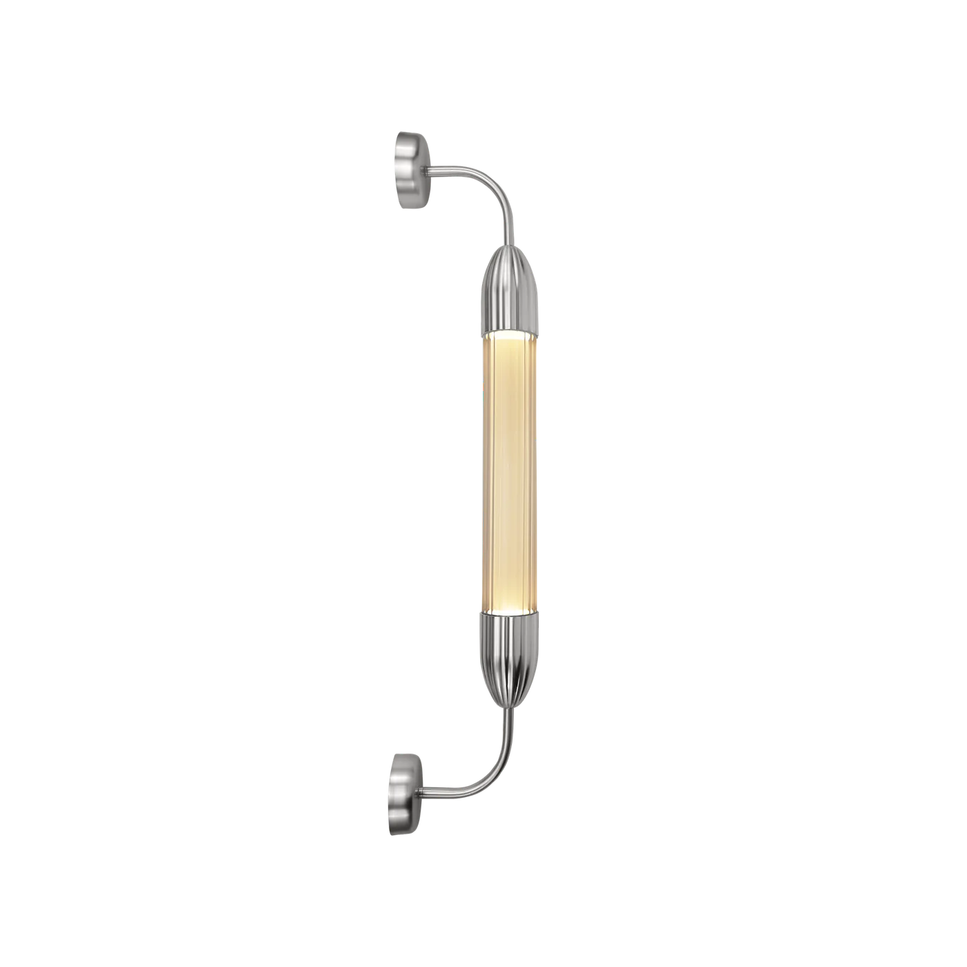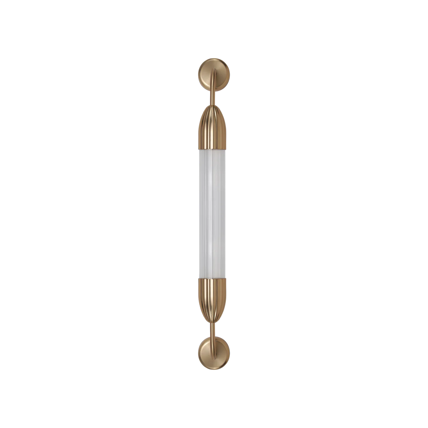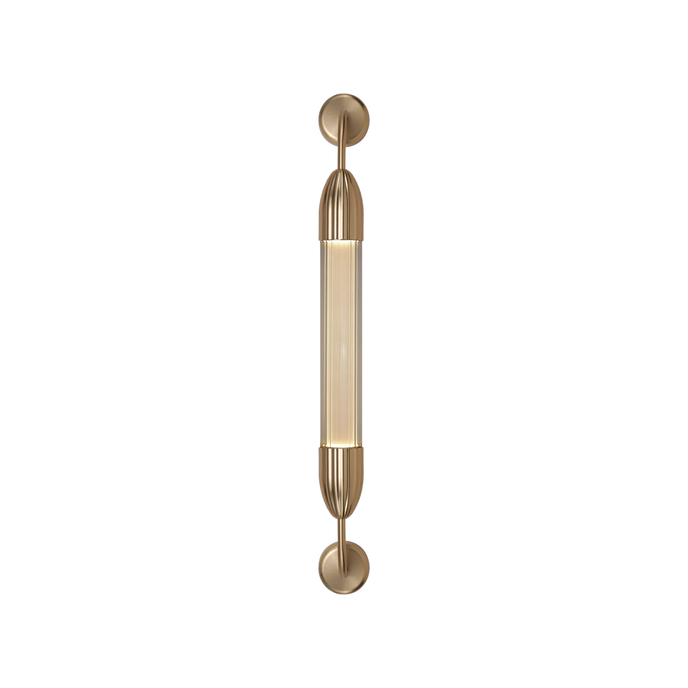 A Lemon Squeeze fali lámpa nosztalgikus bájt sugall a texturált üveg és a szoborszerű fém részletek kombinációjával, ötvözve a kortárs eleganciát a múltra való kecses utalásokkal. Az üveg texturált felülete gyönyörűen árasztja a fényt és egyenletes megvilágítást biztosít, amely nyugodt és harmonikus légkört teremt. A Lemon Squeeze fali lámpa akár egy előszobát dob fel, akár egy nappalit világosít fel egy csipetnyi melegséget és kifinomultságot kölcsönöz bármely helyiségnek. Hosszabb lámpabúrával ellátott kivitelben is elérhető.