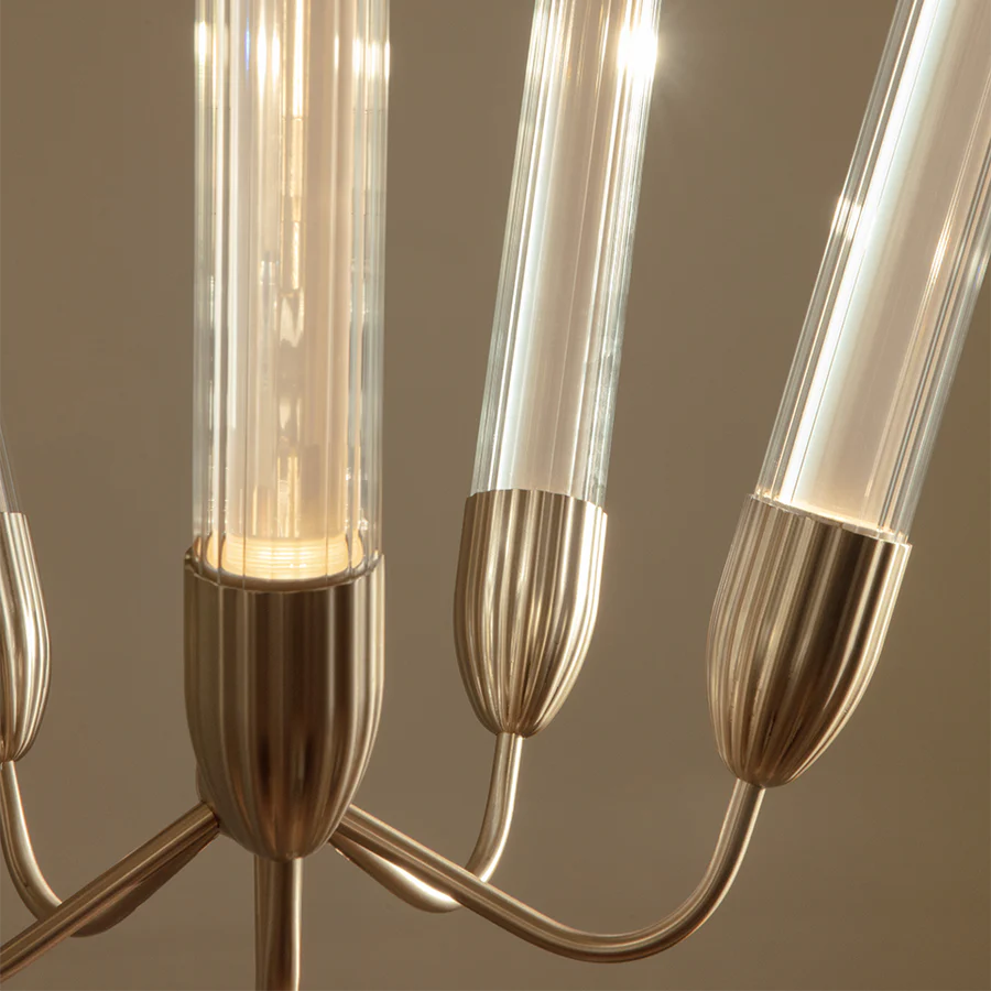 A Lemon Squeeze függőlámpa a fényt és a dizájnt ünnepli jellegzetes formatervezésű üvegével, szoborszerű fém részleteivel és csillár-szerű kivitelezésével. Az üveg egyedi textúrája megragadja a fényt, míg az egyes fénycsövek középpontjában lévő diffúzor lágy, egyenletes megvilágítást biztosít, így bármilyen alkalomra hívogató hangulatot teremt. Az időtlen tervezési hagyományokban gyökerező függőlámpa melegséget és kifinomultságot visz a belső terekbe. Akár egy étkezőhelyiséget világít meg, akár egy nappalit dob fel, funkcionális, mégis dekoratív kialakítása könnyedén alkalmazkodik a legkülönbözőbb környezetekhez. Magassága 97.5-152.5 cm között állítható. Hosszú lámpabúrákkal ellátott kivitelben is elérhető.