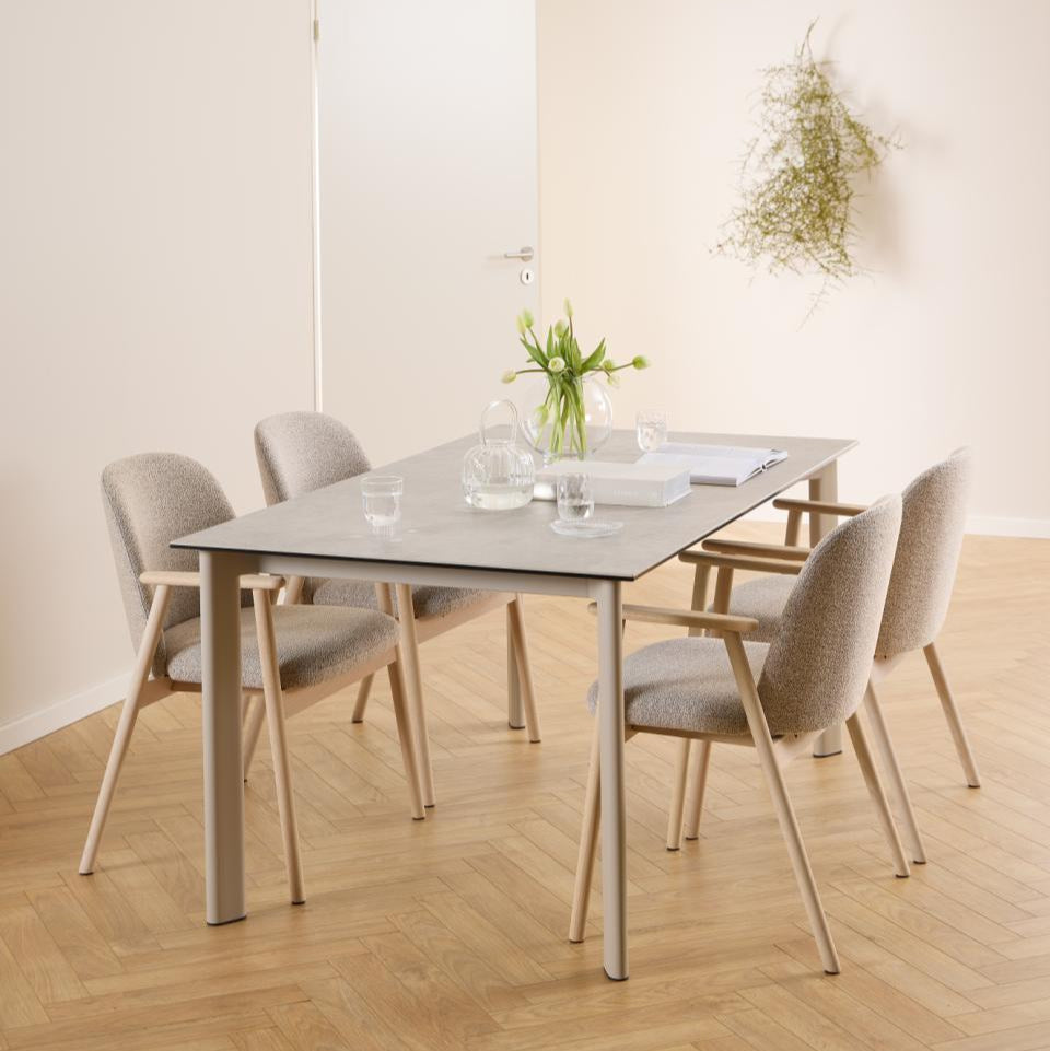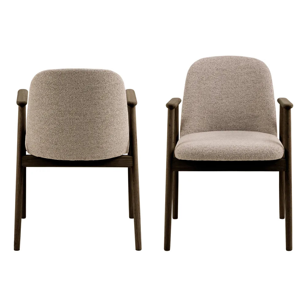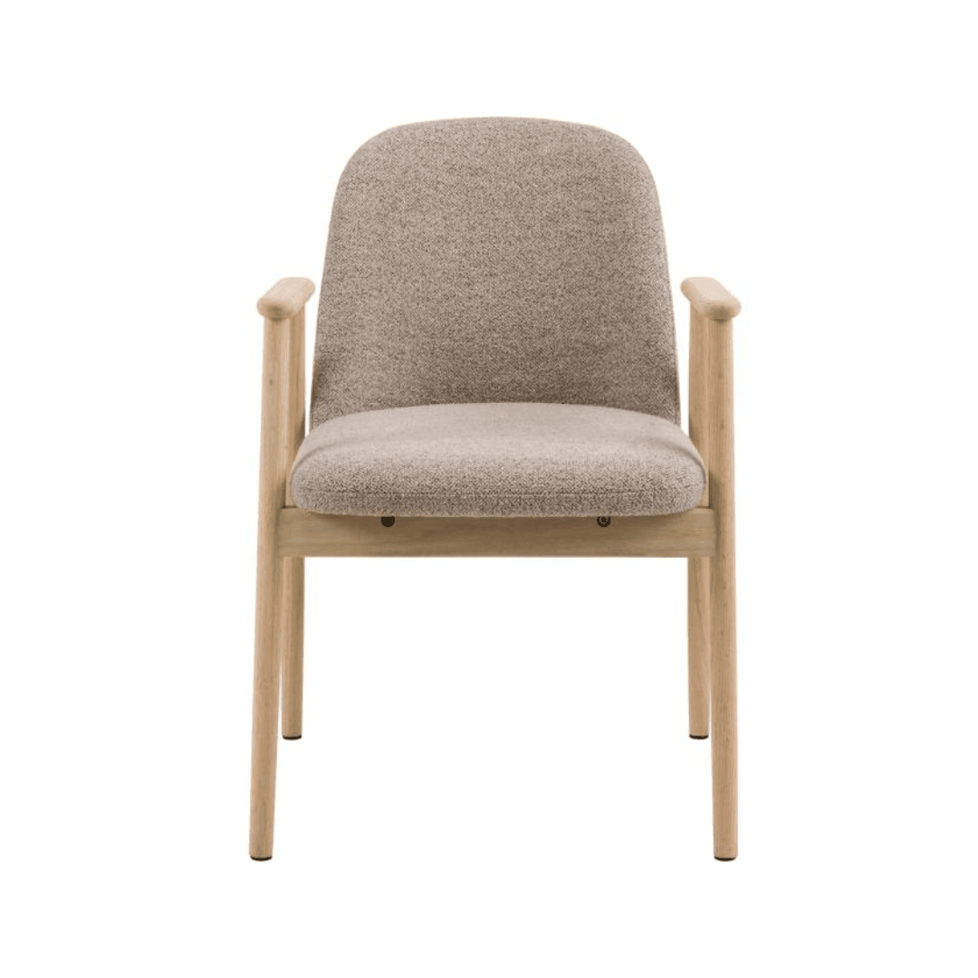 A Leo karfás étkezőszék esztétikus skandináv eleganciát kölcsönöz az étkezőnek. Az ülés bézs színű bouclé anyaggal kárpitozott, melynek szerkezete a modern, mégis elegáns érzés érdekében készült. A karcsú lábakkal megtámasztott szék szoborszerű kialakítású, a tölgy pedig kiemeli a skandináv stílust. Párnázott ülése és karfái miatt a hosszú időn át tartó használat is kényelmes marad.