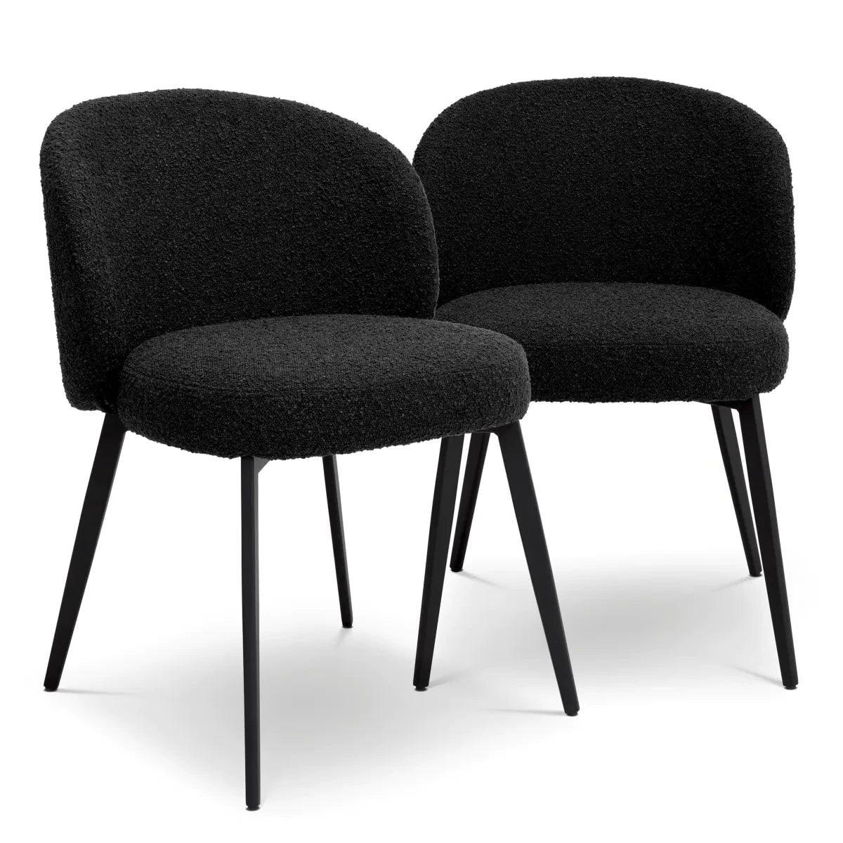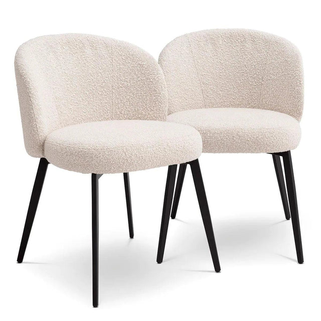 A részletekre való odafigyeléssel kialakított Lloyd étkezőszék stílusos és kényelmes ülést biztosít. Pókszerű fekete lábaival és bouclé kárpitjával ez az étkezőszék mindennapi használatra alkalmas. Kialakítása elegánsan egyszerű, ívelt, párnázott háttámlája kellemes tartást nyújt a hátnak és a karoknak. A Lloyd étkezőszéket 2 darabos készletben szállítjuk.