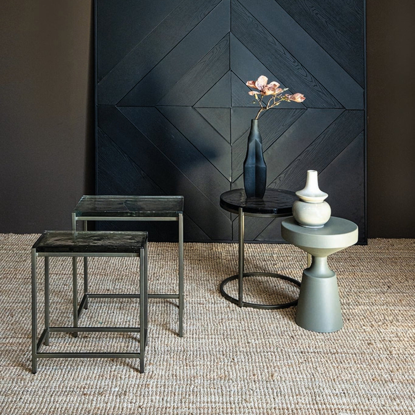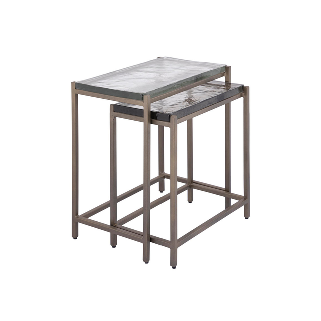 A Lucinde lerakóasztal szett 2 különböző méretű darabból áll, melyek vastag, lazúros üveg lappal, és keretes, réz vázzal rendelkeznek. Praktikus kialakításuk, és elegáns megjelenésük miatt együtt, és külön-külön is elhelyezhetőek, így sokoldalú kiegészítői lehetnek otthonodnak.