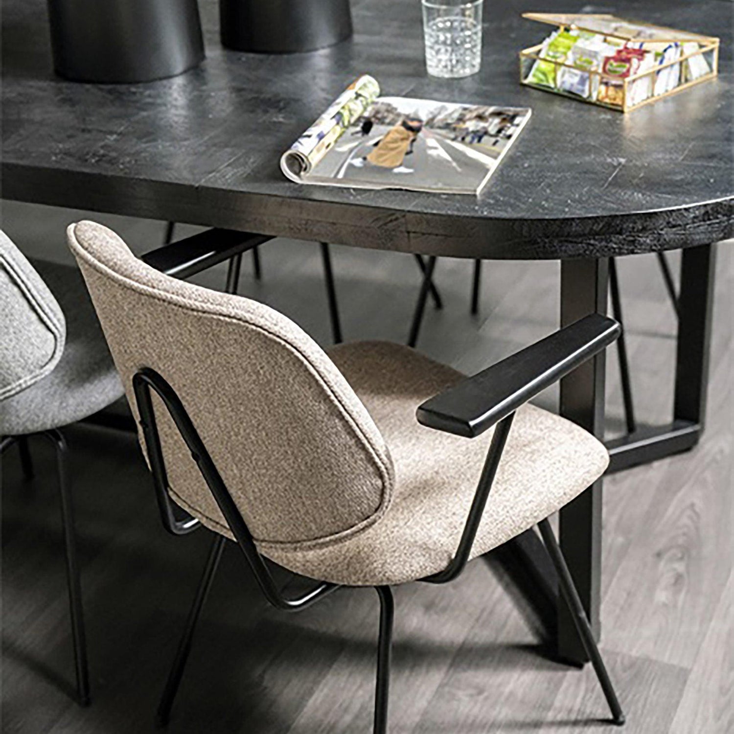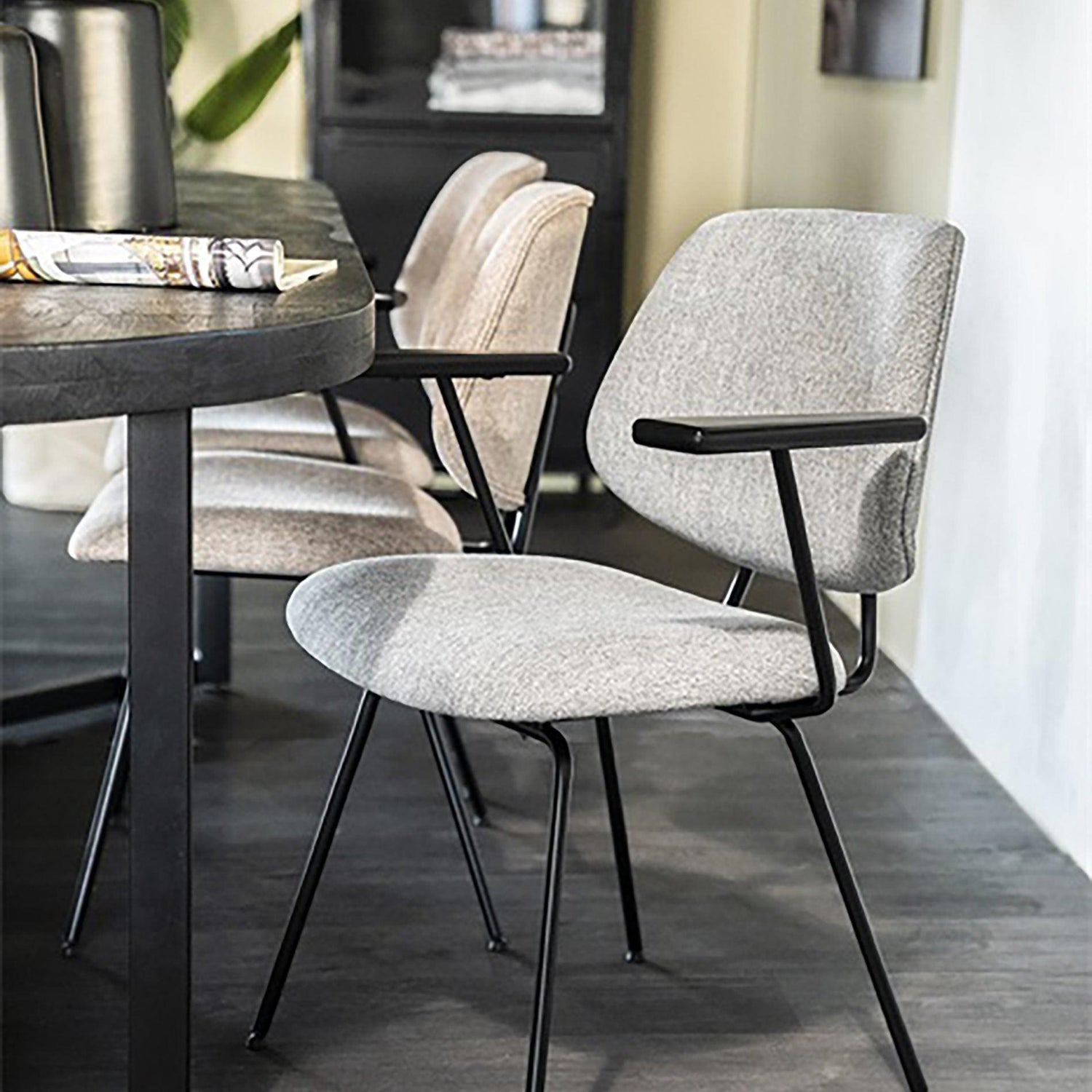 A Lynn szék modern megjelenésével bármely szoba kiemelkedő darabja lehet. A kifelé álló, vékony, fekete lábak, és karfák kontrasztot alkotnak a kárpitozással, a szögletes felületek pedig stílusos hatást keltenek. A Lynn szék bézs, rózsaszín, és világosszürke színekben érhető el.