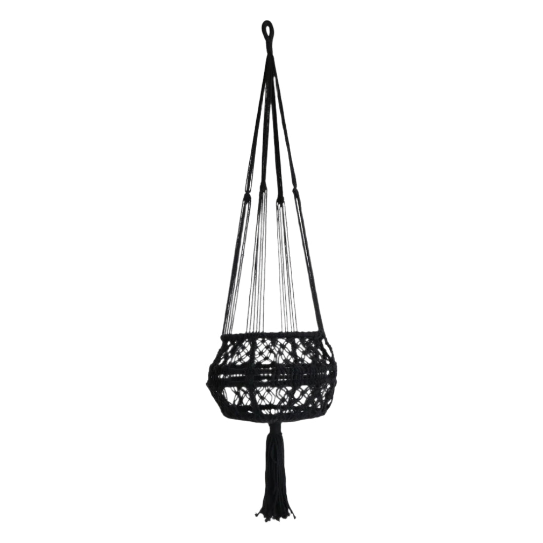 Ez a Macrame, egy extra nagy kosárral ellátott növénytartó, ami pamutfonalból, makramé technikával készült. Fekete és natúr színben is kapható. Szépen kombinálható a bohém, természetes és modern stílusokkal. Helyezd növényeidet reflektorfénybe, ezzel az egyedi függő növénytartóval.