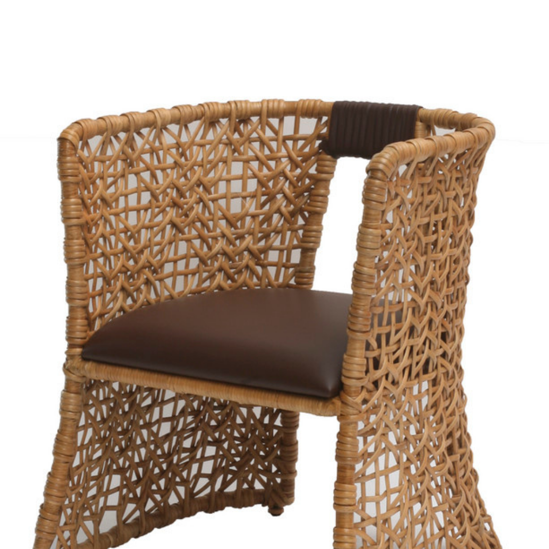 Egyedi kialakítás, és látványos dizájn, ezek jellemzik a Mamoré széket. A különleges megjelenésű, natúr színű rattan keret kényelmes használatot nyújt, a vastag, sötétbarna bőr ülés pedig tovább fokozza a komfortérzetet. Masszív felépítése, és a minőségi anyagok miatt pedig hosszú élettartammal bír.