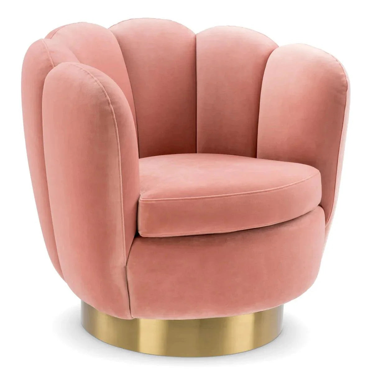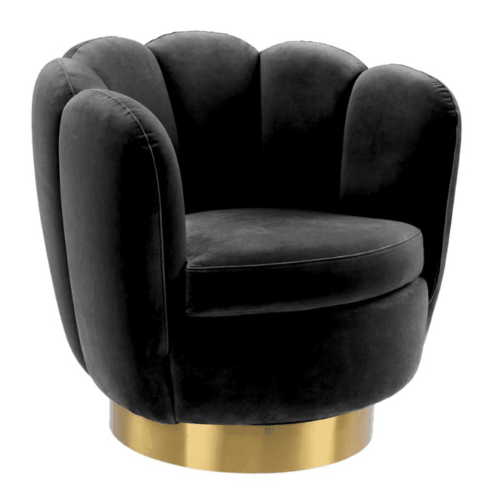 Adj ötvenes évekbeli csillogást a nappalidnak a pazar Mirage forgó bársony fotel segítségével. Kagyló alakú formájával és elegáns bársony kárpitozásával ez a gyönyörű fotel tökéletesen kiegészíti otthonod belső tereit. Igazán nagyszerű választás, ha egy stílusos és kényelmes ülőhelyre vágysz. A retro dizájn és a luxus kárpitozás egyedivé teszi a bútort. Emellett a forgó mechanizmus praktikus és kényelmes használatot biztosít a mindennapokban.