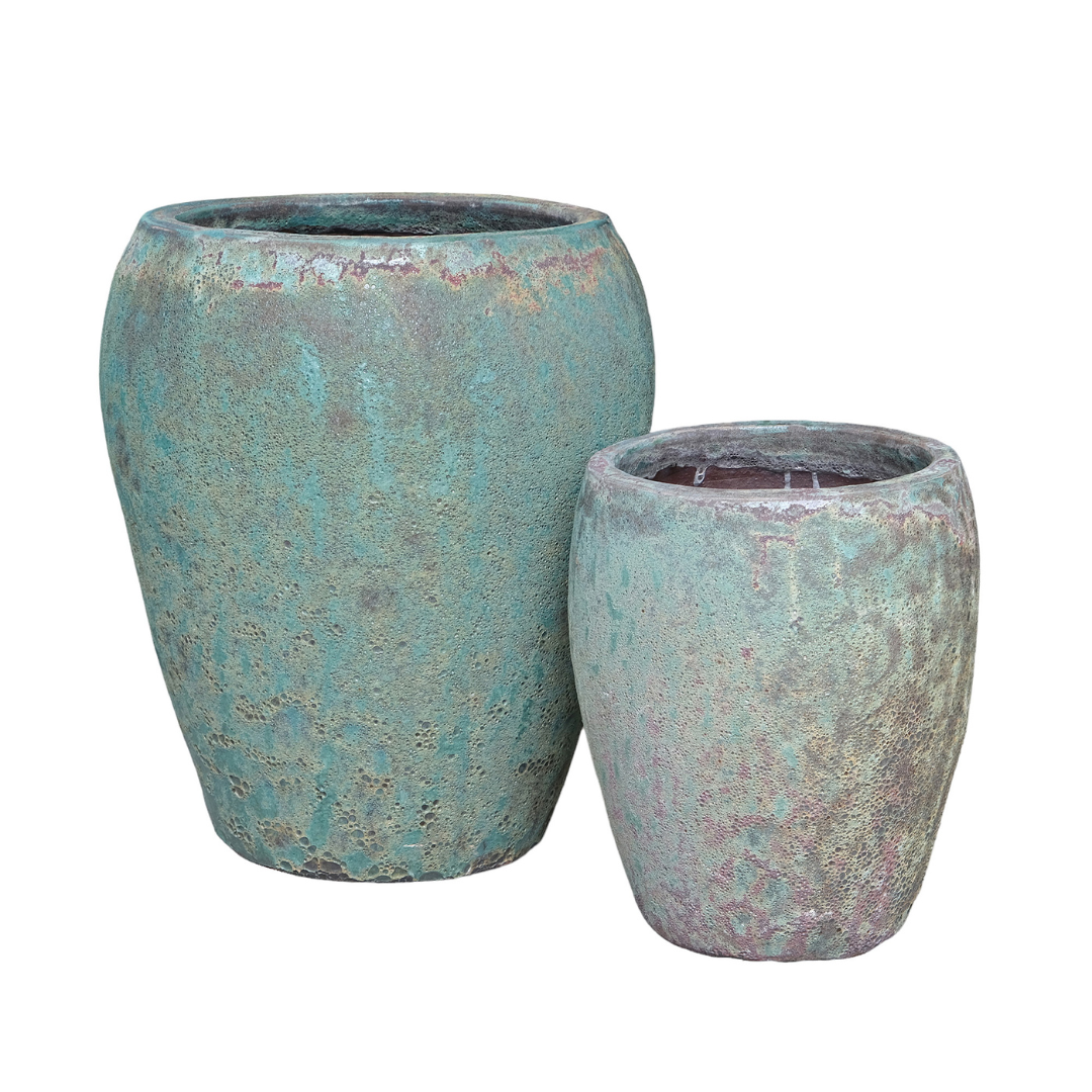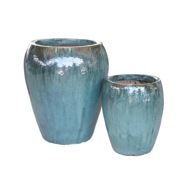A kültéren, és beltéren is használható Nasser virágtartó szett két különböző méretű kaspót tartalmaz. Különleges bevonata, és öblös formája miatt könnyedén illeszkedik bármilyen környezetbe. A kisebb mérete Ø42x50 cm, a nagyobb pedig Ø60x70 cm. A készlet fényes világoskék, és kopottas világoszöld színekben kapható.