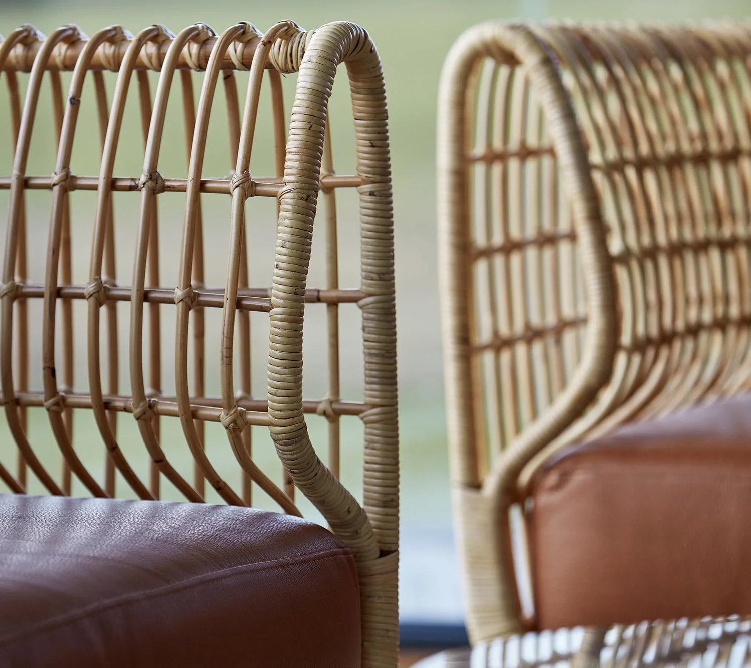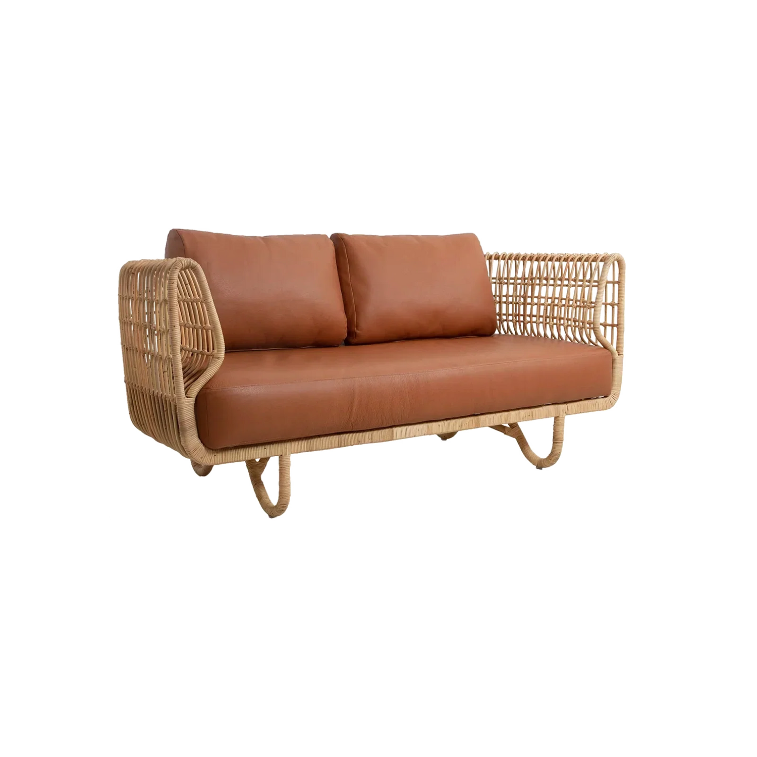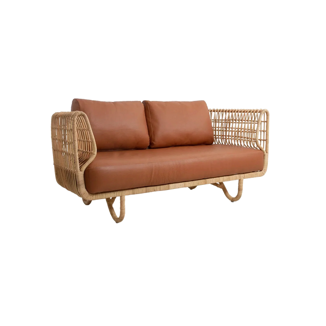 A Nest 2 személyes kanapét a dán Foersom & Hiort-Lorenzen MDD formatervező páros tervezte, akik imádják a természetet és a hagyományos kézművességet. A Nest a vastag, világosbarna bőr párnákkal kiegészítve maximális kényelmet biztosít. Tartós, és minőségi, natúr színű rattanból készült, erős alumínium vázzal, így egy időtlen és rendkívül strapabíró bútordarab.