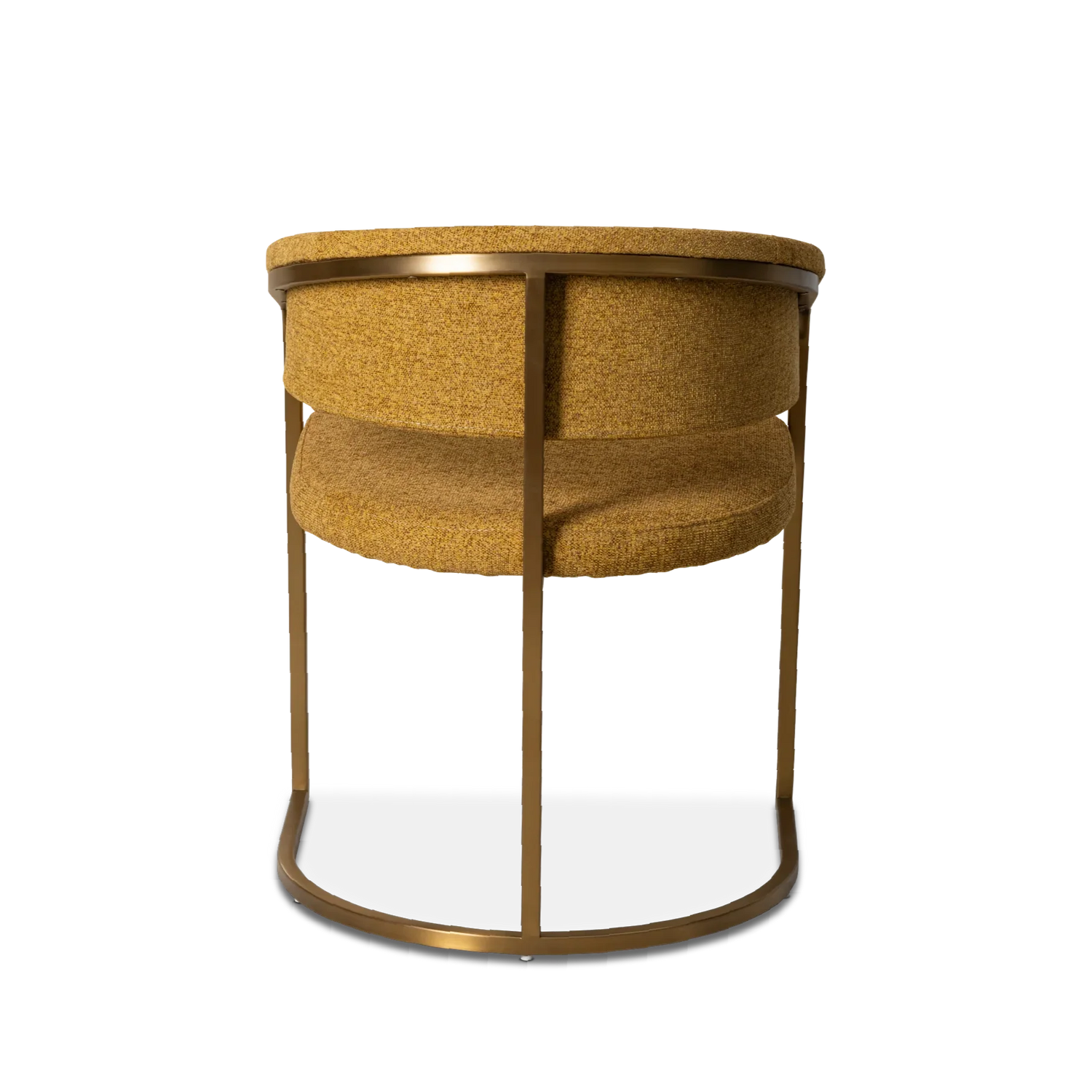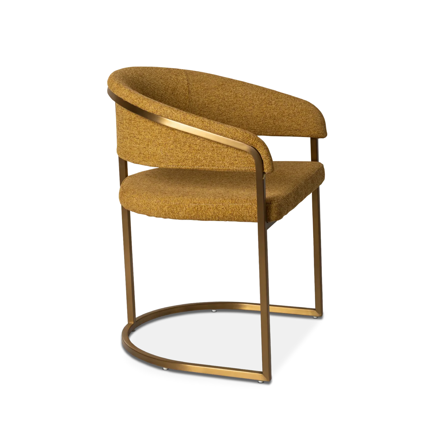 A Nikolai étkezőszék stílusos és kényelmes szövet kárpittal rendelkezik, amely elegáns megjelenést kölcsönöz a környezetének. A masszív fém lábak stabil alapot biztosítanak. A párnázott ülés és háttámla maximális kényelmet biztosít. A letisztult dizájn és a bronz szín sokoldalú darabbá teszik, amely könnyedén beilleszthető bármely étkező dekorációjába.