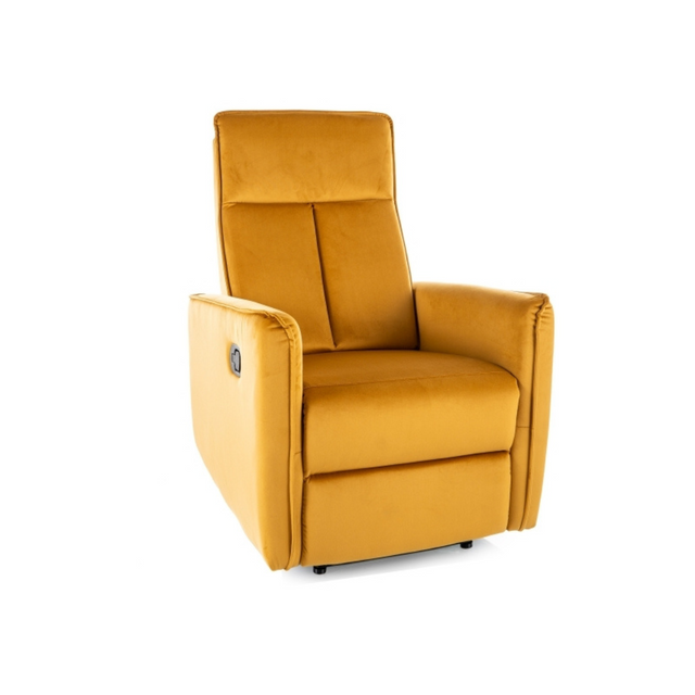 A Nikos fotel egy modern megjelenésű ülőbútor, amely ideális otthoni vagy irodai környezetbe is. A fotel döntött háttámlával, és vastag párnázattal rendelkezik, melyek garantálják a kényelmes pihenést. A fotel sárga, sötétszürke, vagy sötétbarna bársony kárpitozással választható, ezért könnyen illeszkedik a különböző stílusú belső terekhez.