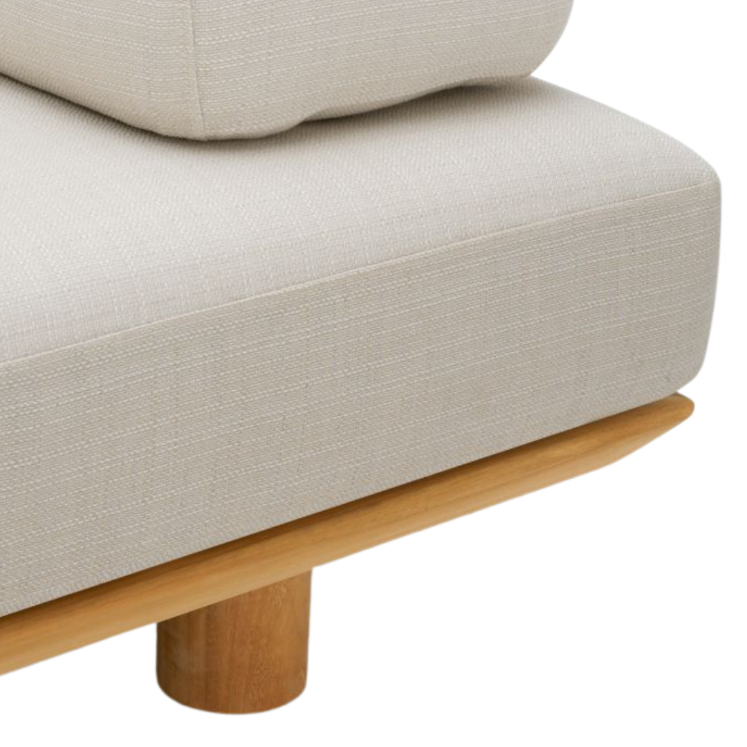 Fedezd fel a visszafogott eleganciát a Nomade kerti kanapéval, amely természetes teakfa vázzal és luxus Lucio homokszínű szövetborítással rendelkezik. Három különálló háttámla párnával ellátott, rugalmas kialakításának köszönhetően könnyedén átalakítható kanapévá vagy napozóágyá.