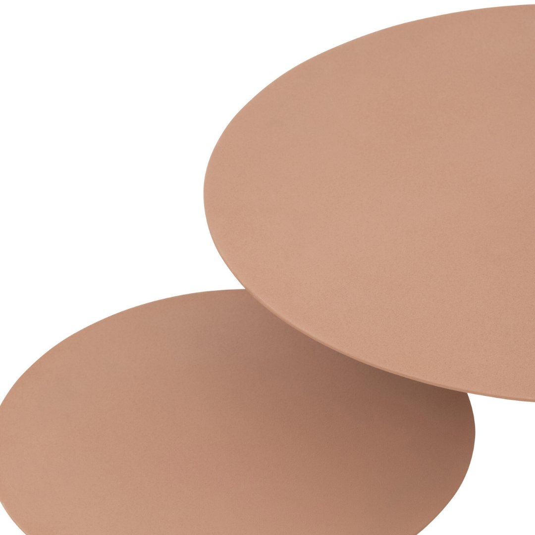 Az Old Pink lerakóasztal szett három elegáns és funkcionális asztalt tartalmaz, melyek ideális kiegészítői lehetnek bármely modern vagy minimalista stílusú otthonnak. A készlet különböző méretű asztalokat kínál, lehetővé téve a sokoldalú elrendezést és használatot. A vintage rózsaszín árnyalat egyediséget és melegséget kölcsönöz a bútordaraboknak, míg a matt porszórt fém felület biztosítja a tartósságot és a könnyű tisztítást.