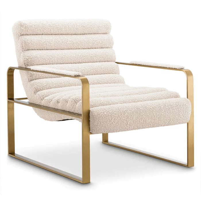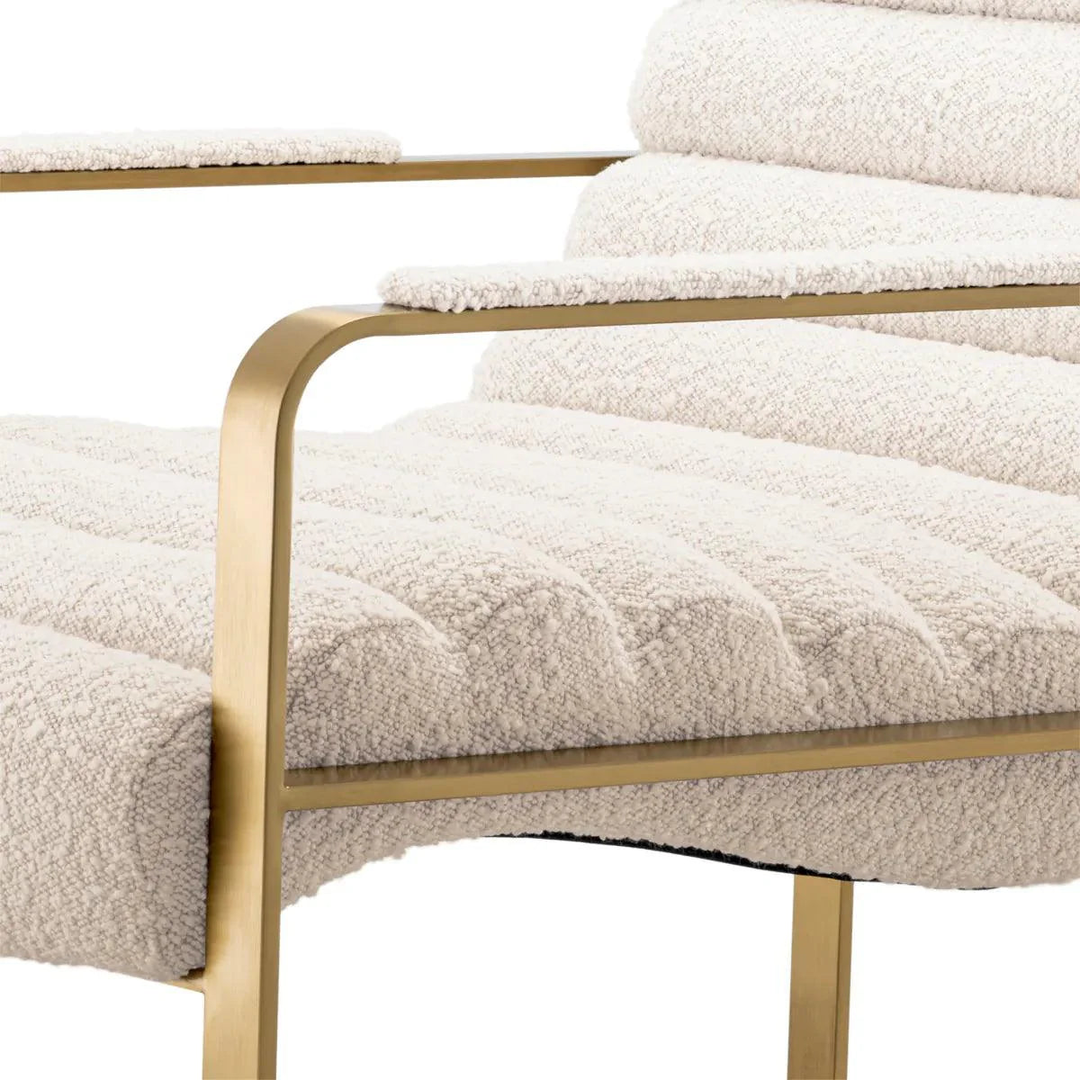 Az Olsen buklé fotel a modern dizájn és a stílus nagyszerű elegye, maga a megtestesült csupa báj. Ez a fényűző fotel luxus kárpitozású párnázatával és kifinomult, szálcsiszolt sárgaréz fémszerkezetével hozzájárul a pihenési élményedhez. Minden bizonnyal a kedvenc ülőhelyed egyike lesz otthonodban. Egy igazi jellegzetes Eichholtz darab, az igényes belső terek elengedhetetlen kiegészítője.