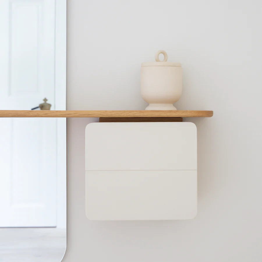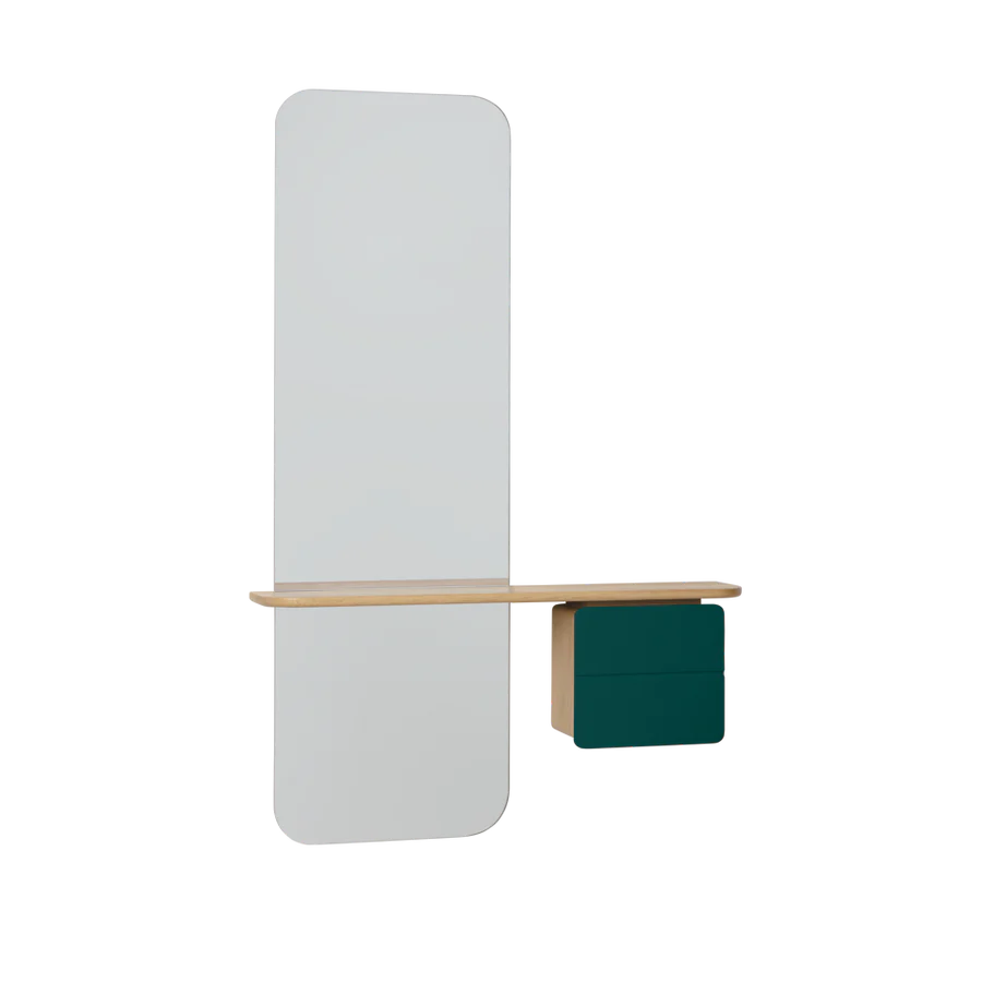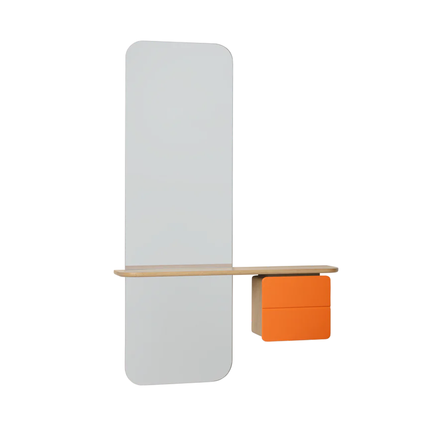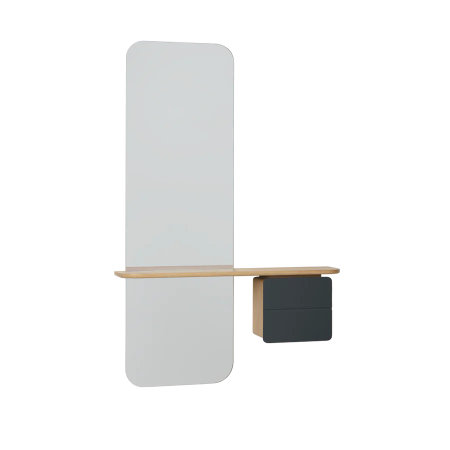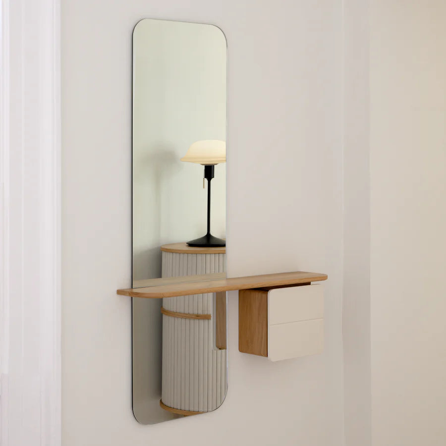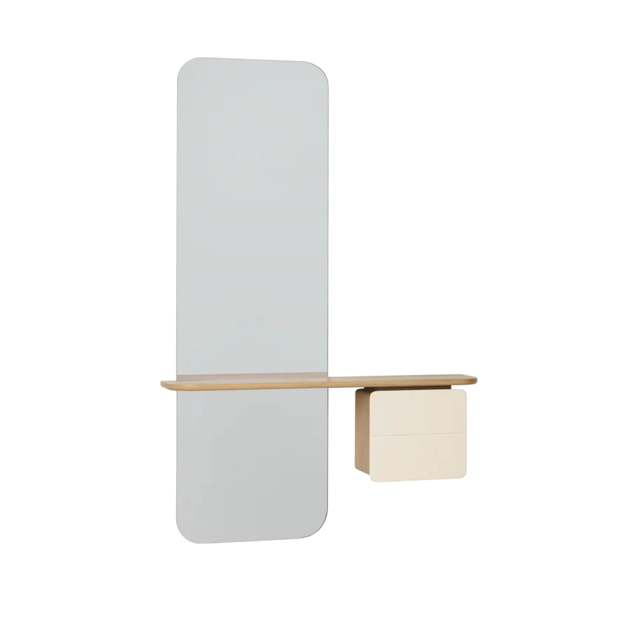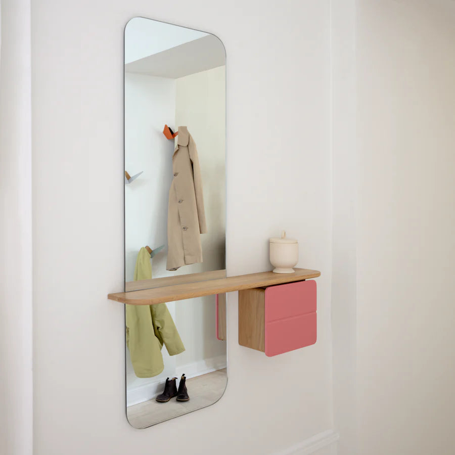 A One More Look egy könnyed és légies tükör, minimalista skandináv hangulattal és számos hozzáadott funkcióval, hogy megfeleljen a városi élet mindennapi igényeinek. A minimális helyet foglaló One More Look ideális minden méretű előszobába, és jól használható a hálószobában vagy szállodákban és irodai folyosókon is. Pontosan a megfelelő magasságával teljes hosszúságú tükörképet kínál a tökéletes utolsó pillantásért, mielőtt elhagyja az otthont. A tükörben egy polc és egy kis szekrény található kézitükörrel és egy bőrtálcával - tökéletes a mindennapi alapvető dolgok, például kulcsok, smink, napszemüveg vagy tartalék érmék tárolására. Akár az a célod, hogy életet lehelj előszobádba, akár az, hogy karaktert adj hálószobádnak, számos lehetőség áll rendelkezésedre. Tíz színből álló palettáról választhatsz, de rattan kivitelben is elérhető. A One More Look-ot úgy tervezték, hogy kiegészítse otthonodat, és olyan teret hozzon létre, ahol az elegancia, a sokoldalúság és a funkcionalitás harmonikusan megfér egymás mellett.