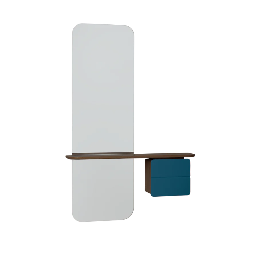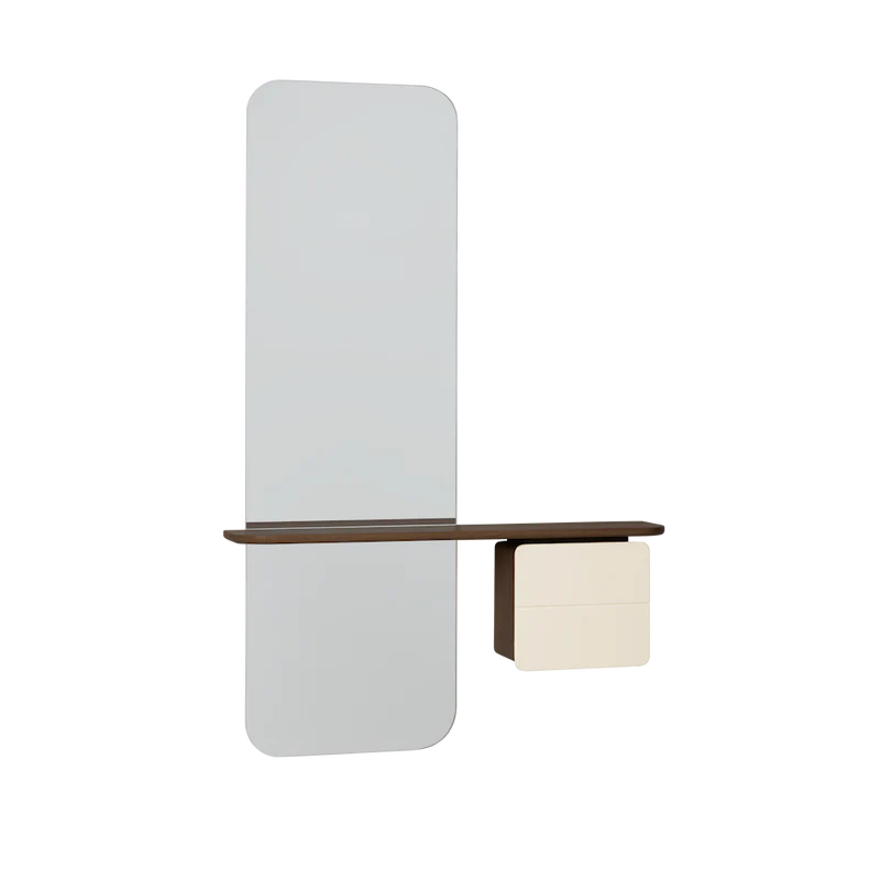 A One More Look egy könnyed és légies tükör, minimalista skandináv hangulattal és számos hozzáadott funkcióval, hogy megfeleljen a városi élet mindennapi igényeinek. A minimális helyet foglaló One More Look ideális minden méretű előszobába, és jól használható a hálószobában vagy szállodákban és irodai folyosókon is. Pontosan a megfelelő magasságával teljes hosszúságú tükörképet kínál a tökéletes utolsó pillantásért, mielőtt elhagyja az otthont. A tükörben egy polc és egy kis szekrény található kézitükörrel és egy bőrtálcával - tökéletes a mindennapi alapvető dolgok, például kulcsok, smink, napszemüveg vagy tartalék érmék tárolására. Akár az a célod, hogy életet lehelj előszobádba, akár az, hogy karaktert adj hálószobádnak, számos lehetőség áll rendelkezésedre. A One More Look-ot úgy tervezték, hogy kiegészítse otthonodat, és olyan teret hozzon létre, ahol az elegancia, a sokoldalúság és a funkcionalitás harmonikusan megfér egymás mellett.