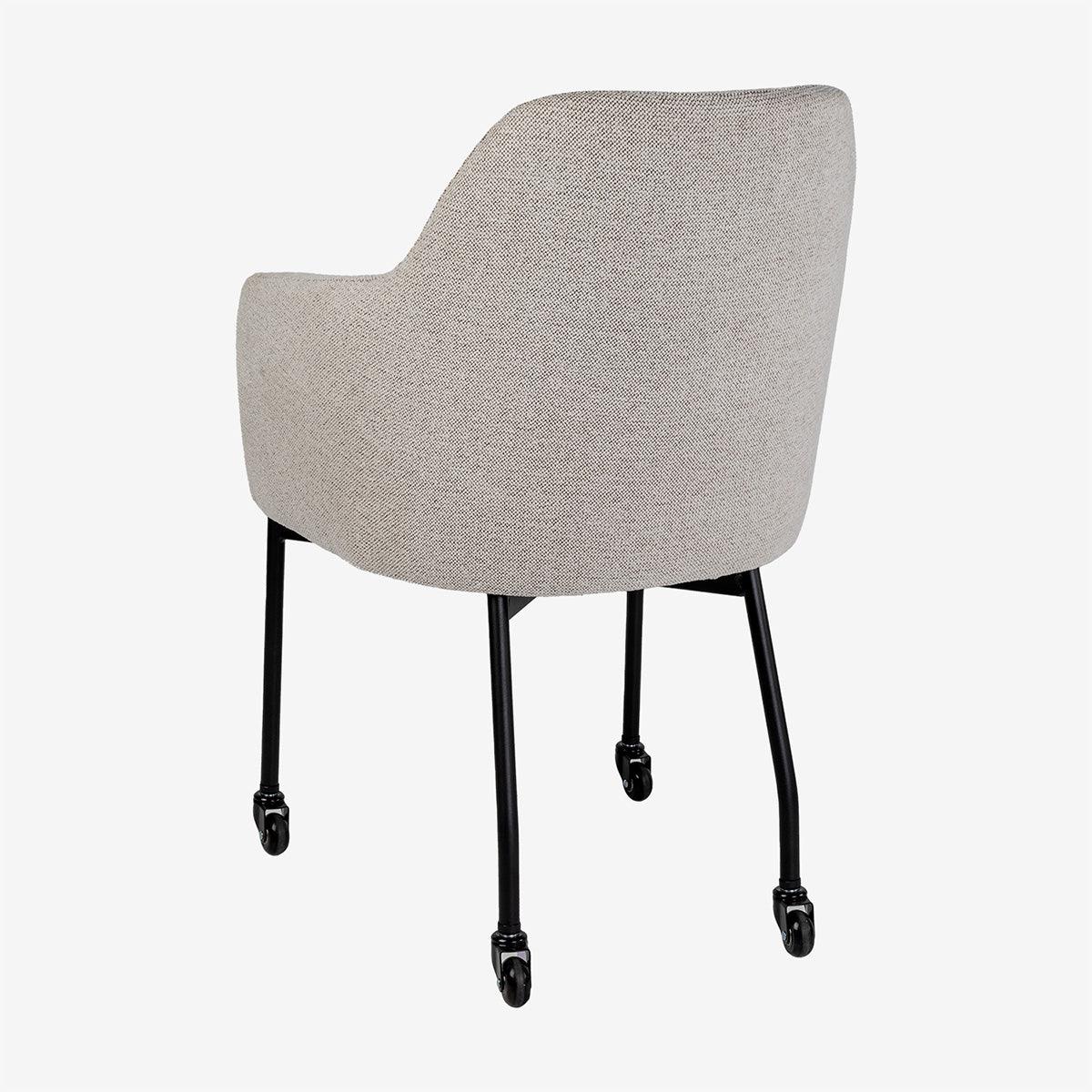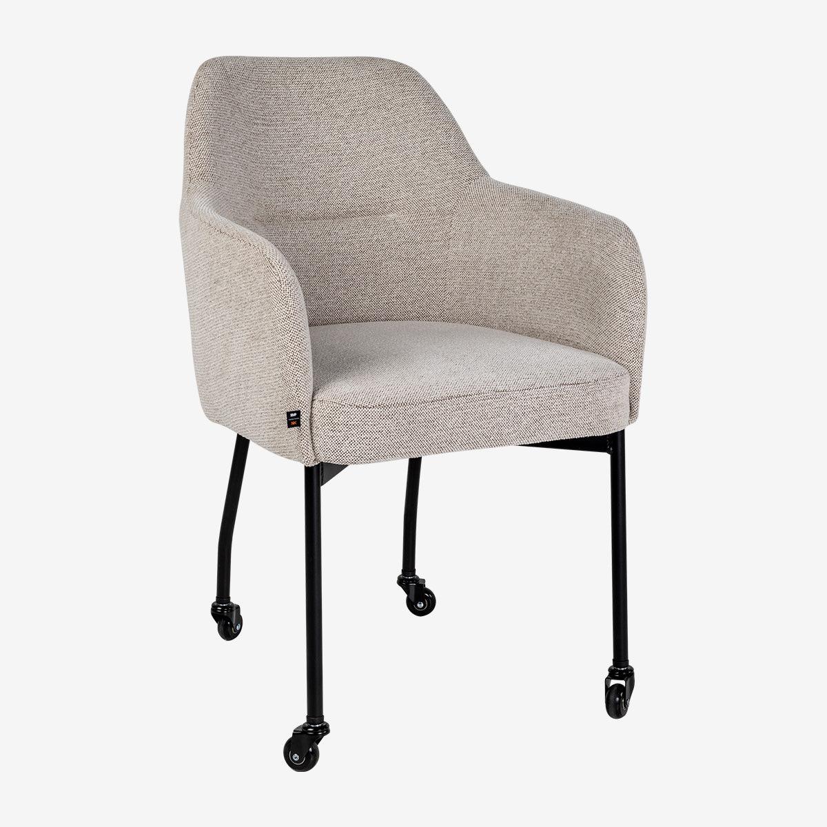 A Para gurulós szék egy különleges megjelenésű bútordarab, mely vastagon párnázott felületekkel, fotel szerű kialakítással, és kerekekkel rendelkezik. Masszív fa váz, és fém lábak tartják, amelyet két rétegű szivacs töltet borít. Huzatának színét és anyagát a saját ízlésed szerint választhatod ki a több száz variáció közül. A képen látható Para szék finom tapintású Sneak 05 szövettel van kárpitozva.
