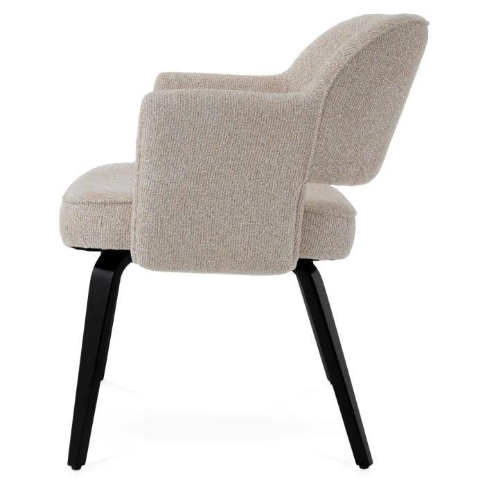 Bemutatjuk az Eichholtz x THE MET kollekció Park étkezőszékét. Ez a szék páratlan kényelmet kínál, és letisztult vonalaival büszkélkedhet, amelyek a modern luxust testesítik meg. Exkluzív és pazar Johnston Mohair barna vagy Palmer bézs szövettel, elegáns fekete lábakkal kárpitozva kifinomultságot áraszt. A szék többnyire természetes anyagokat tartalmaz, a pazar puha érzés érdekében.
