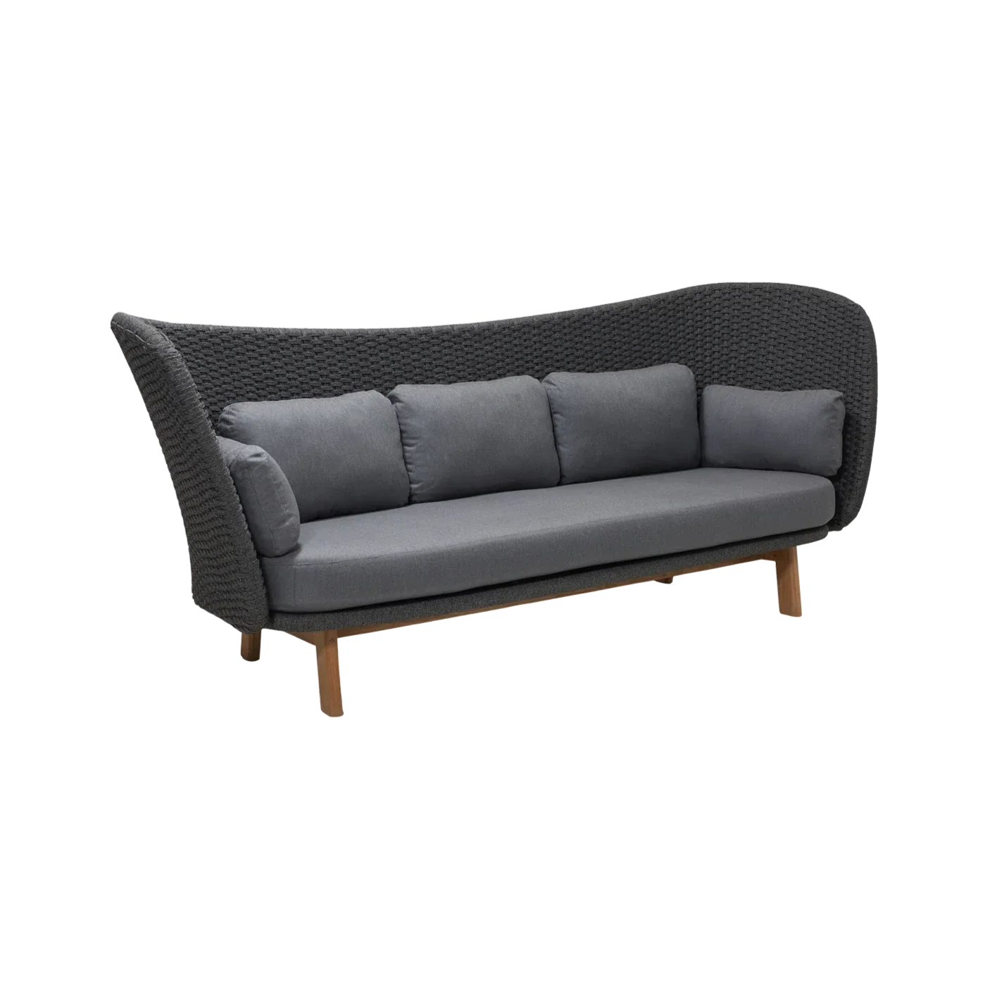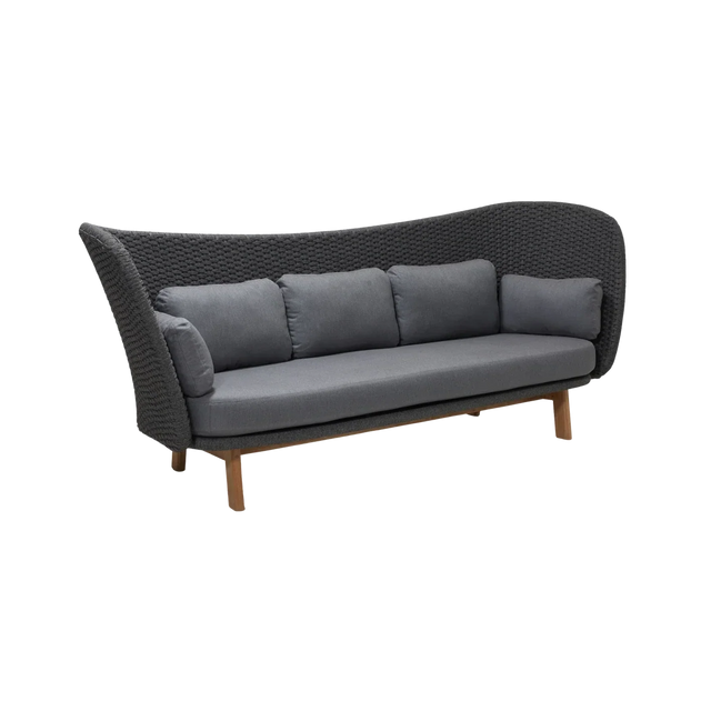 A Peacock 3 személyes kerti kanapé egy gyönyörű, és rendkívül kényelmes bútordarab. Ez a modell modern és szoborszerű megjelenéssel rendelkezik, amelyet a Foersom & Hiort-Lorenzen MDD tervezett. A magas, árnyékoló háttámla tökéletes hellyé teszi a kanapét a kikapcsolódáshoz és a pihenéshez. A Cane-line kötélnek, és a puha párnáknak köszönhetően a kanapé ideális kültéri használatra bármilyen éghajlaton, mivel az anyagok hő- és UV-állóak.