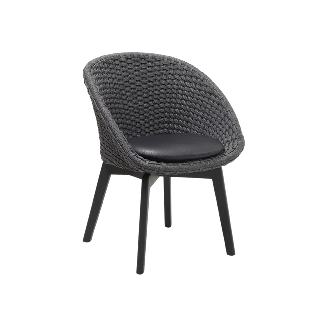 A Peacock egy vizuálisan látványos étkezőszék, amelyet a Foersom & Hiort-Lorenzen MDD tervezett. Az ülőfelület kagyló alakú, és kézzel szőtt, mely tartós és időjárásálló Cane-line Soft Rope kötélből készült. Az anyag a kiváló minőségű tulajdonságok és a kényelmes felület erős kombinációja, ami puha tapintást kölcsönöz a dizájnnak. A Peacock szék vastag, fekete bőr párnával kapható.