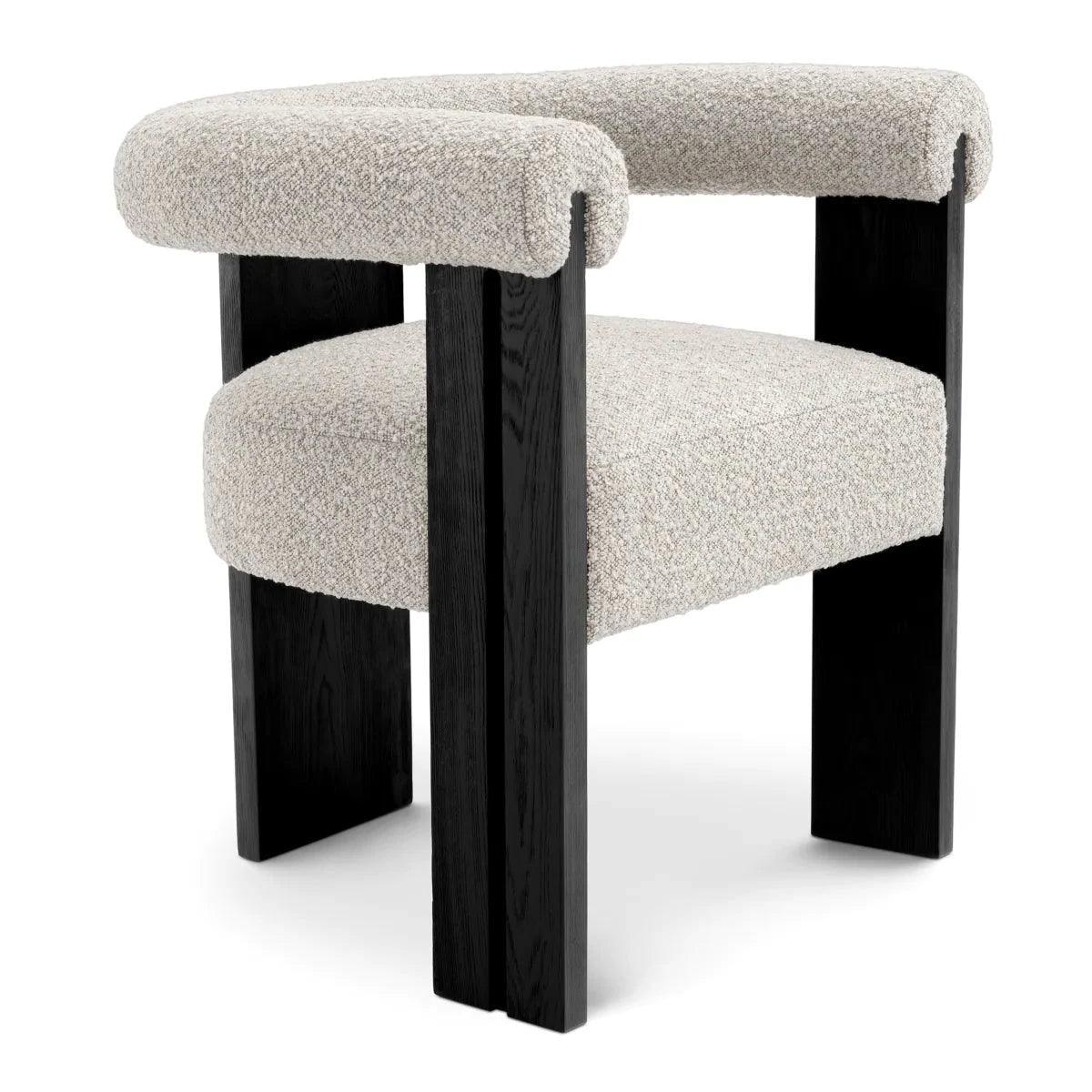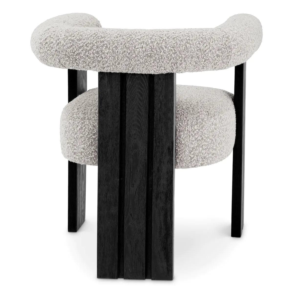 Díszítsd étkeződ modern stílusban a Percy étkezőszékkel. Ez a rendkívüli szék stílusos fekete vázzal és kerek háttámlával rendelkezik, amely tökéletesen illeszkedik a karfákhoz. Bouclé szövettel kárpitozva lehetővé teszi, hogy vendégei hosszú ideig élvezhessék az ülést.