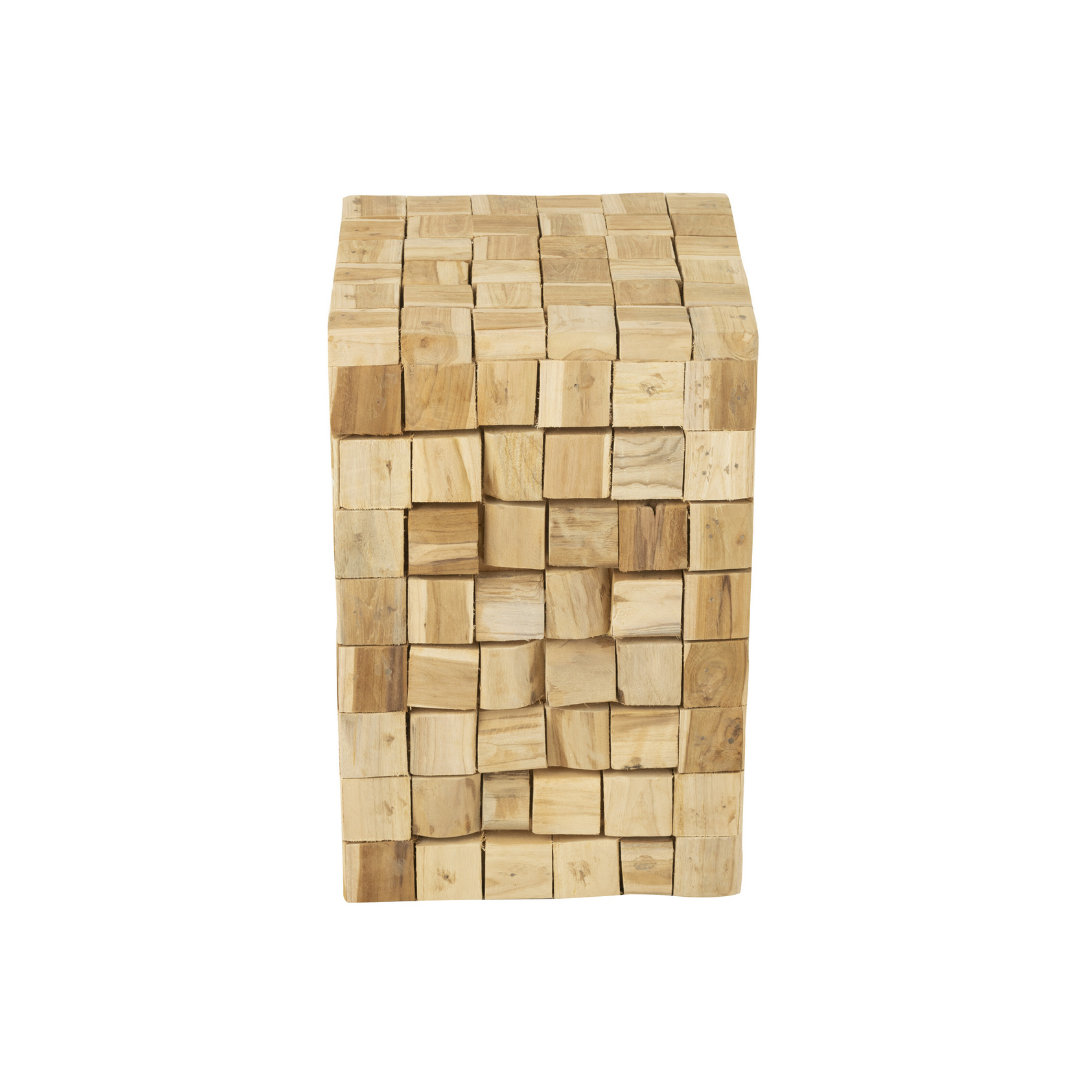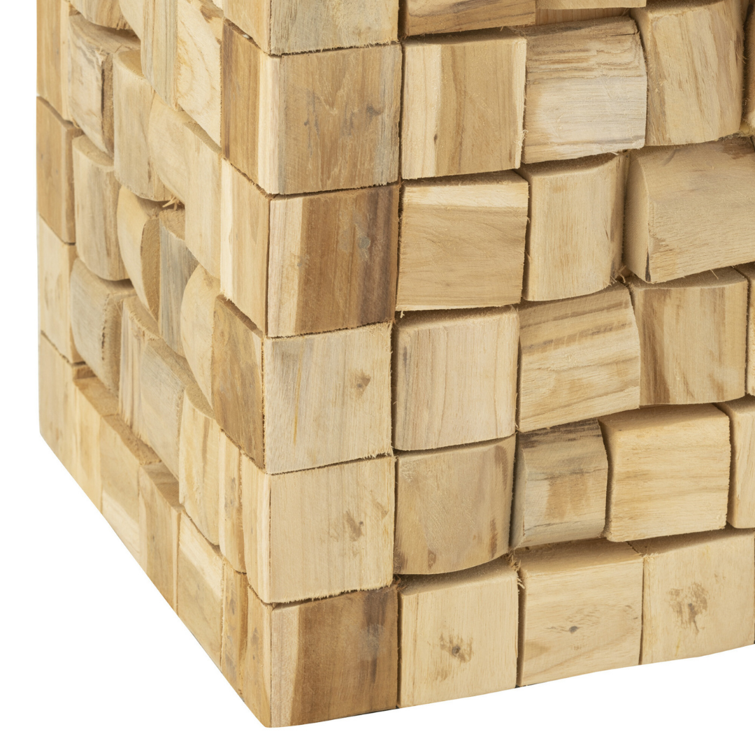 A Pieces lerakóasztal egy sokoldalú bútordarab, amely nemcsak praktikus, hanem esztétikus megjelenésével is felhívja magára a figyelmet. Különleges dizájnja tikfa kockákból készült, ami természetes és egyedi hatást kölcsönöz neki. Az asztal tökéletesen illeszkedik modern vagy rusztikus otthonokba, és a szoba bármely részében használható.