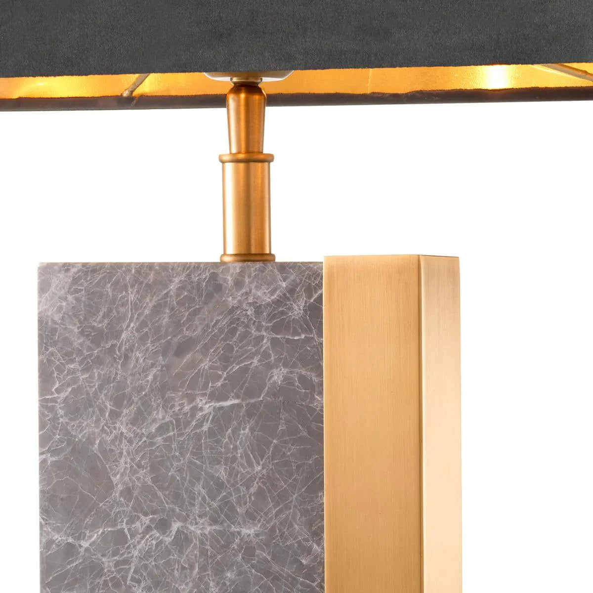 Varázsolj csodás hangulatot a folyosódnak, a nappalidnak vagy a hálószobádnak a Pietro asztali lámpa segítségével. Fehér erezett, szürke márvány téglalap alakú alapját antik sárgaréz bevonatú fémkeret veszi körül. A szintén téglalap alakú kékes-szürke bársony lámpabúrával ez a darab tökéletesen illeszkedik a kanapékhoz vagy az ágyakhoz.