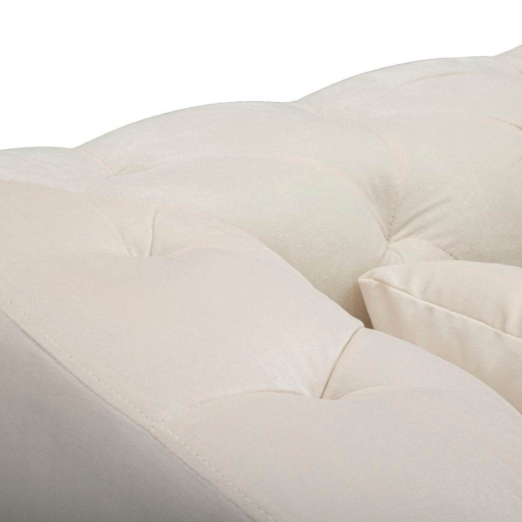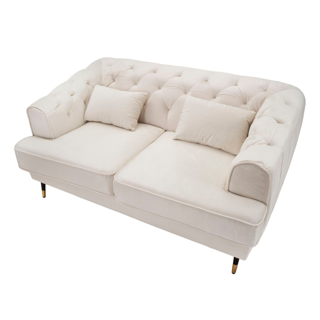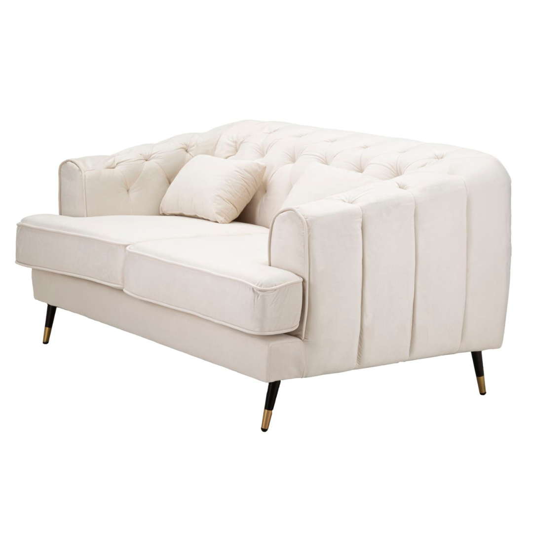 A Praga egy modern stílusban megtervezett 2 személyes kanapé, ami kényelmes és mély ülőfelülettel rendelkezik. Fehér színű, bársonyból készült, tűzött kárpitozása letisztult és esztétikus megjelenést kínál, ezáltal minden térben megállja a helyét. Fekete és arany színű fém lábai tökéletesen kiegészítik kifinomult sziluettjét.
