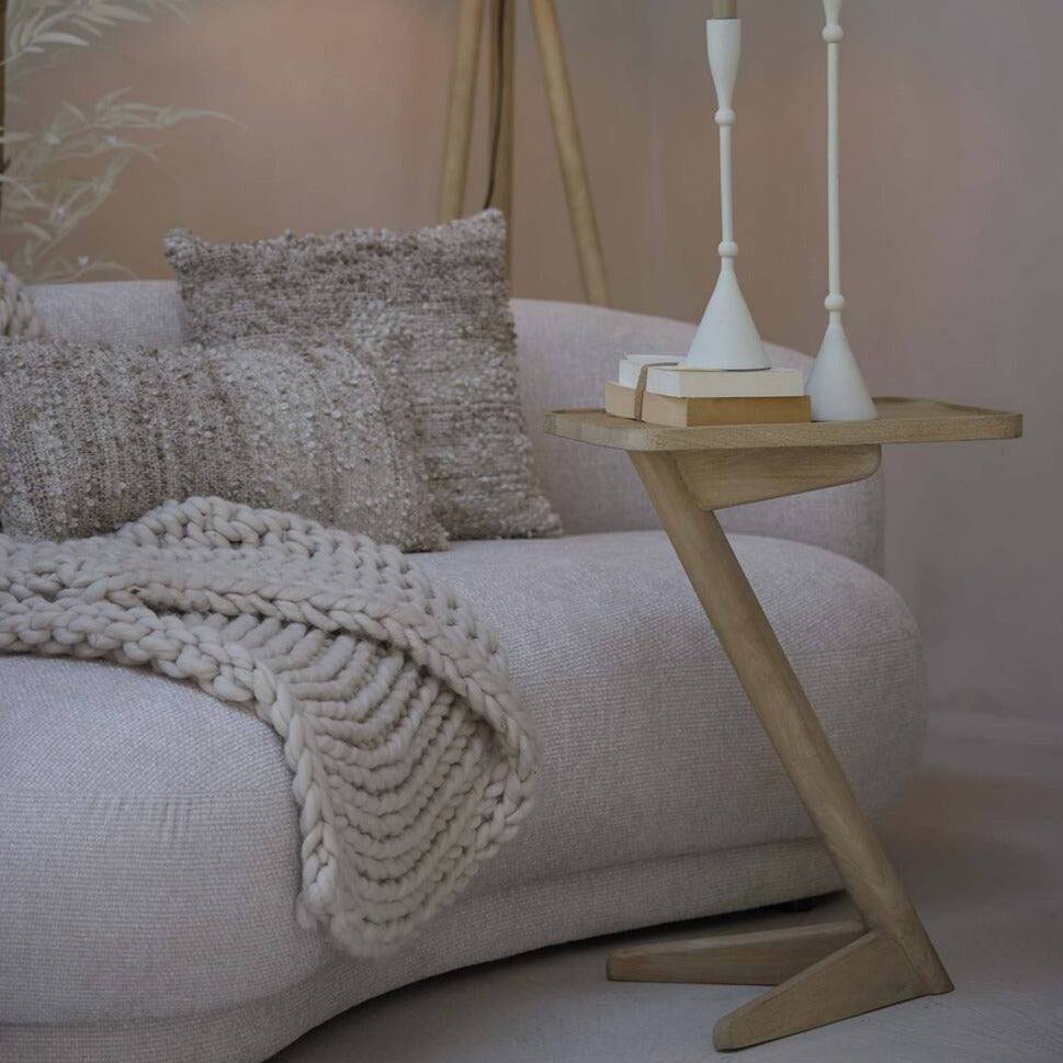 A Qiano lerakóasztal egy praktikus bútordarab, amely ferdén álló lába miatt könnyedén betolható egy fotel vagy kanapé alá, hogy közelebb kerülhessen hozzád a ráhelyezett ital, könyv, vagy bármely más holmi. A mangófából készült asztal natúr, és fekete színekben érhető el.