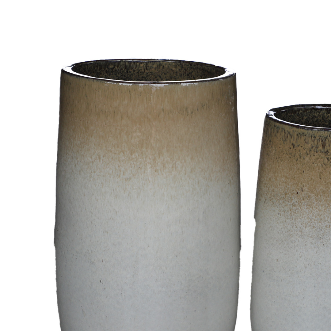 A kültéri, és beltéri használatra is alkalmas Raya virágtartó szett két különböző méretű kaspót tartalmaz. Különleges, színátmenetes bevonata, és hosszúkás formája miatt könnyedén illeszkedik bármilyen környezetbe. A kisebb mérete Ø25x50 cm, a nagyobb pedig Ø30x70 cm.