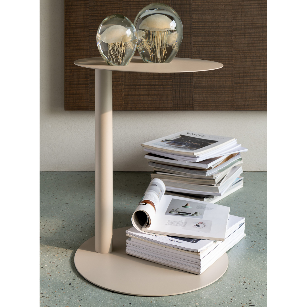A Round lerakóasztal egy minimalista kialakítású, és megjelenésű bútordarab, mely könnyedén illeszkedik bármely belső térbe. Matt világoszöld, bézs, fehér, vagy fekete színű fém anyaga tartós, és időtálló, így hosszú évekig szolgál majd. 40 cm átmérőjű asztallapja elegendő helyet biztosít italok, harapnivalók, vagy dekorációk elhelyezésére is.