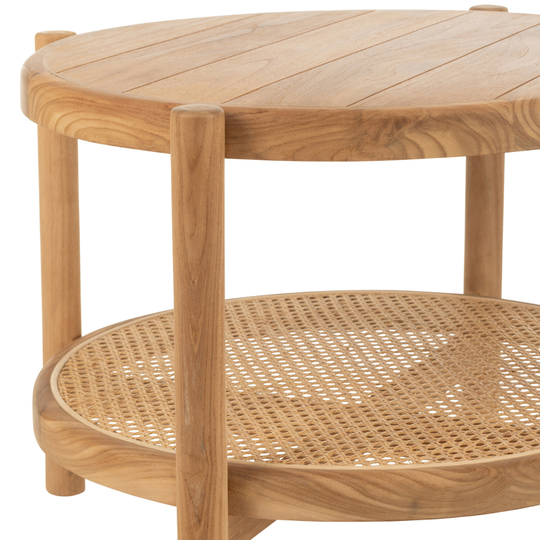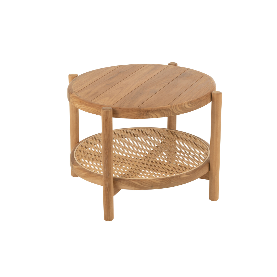 A Round2 lerakóasztal egy elegáns és praktikus bútordarab, amely a J-line gyártó kínálatában található. Ez az asztal natúr színű tikfából készült, amely nemcsak esztétikus megjelenést biztosít, hanem tartós és ellenálló is. A Round2 lerakóasztal különlegessége a rattan polc, amely nemcsak dekoratív, hanem praktikus tárolási lehetőséget is kínál.