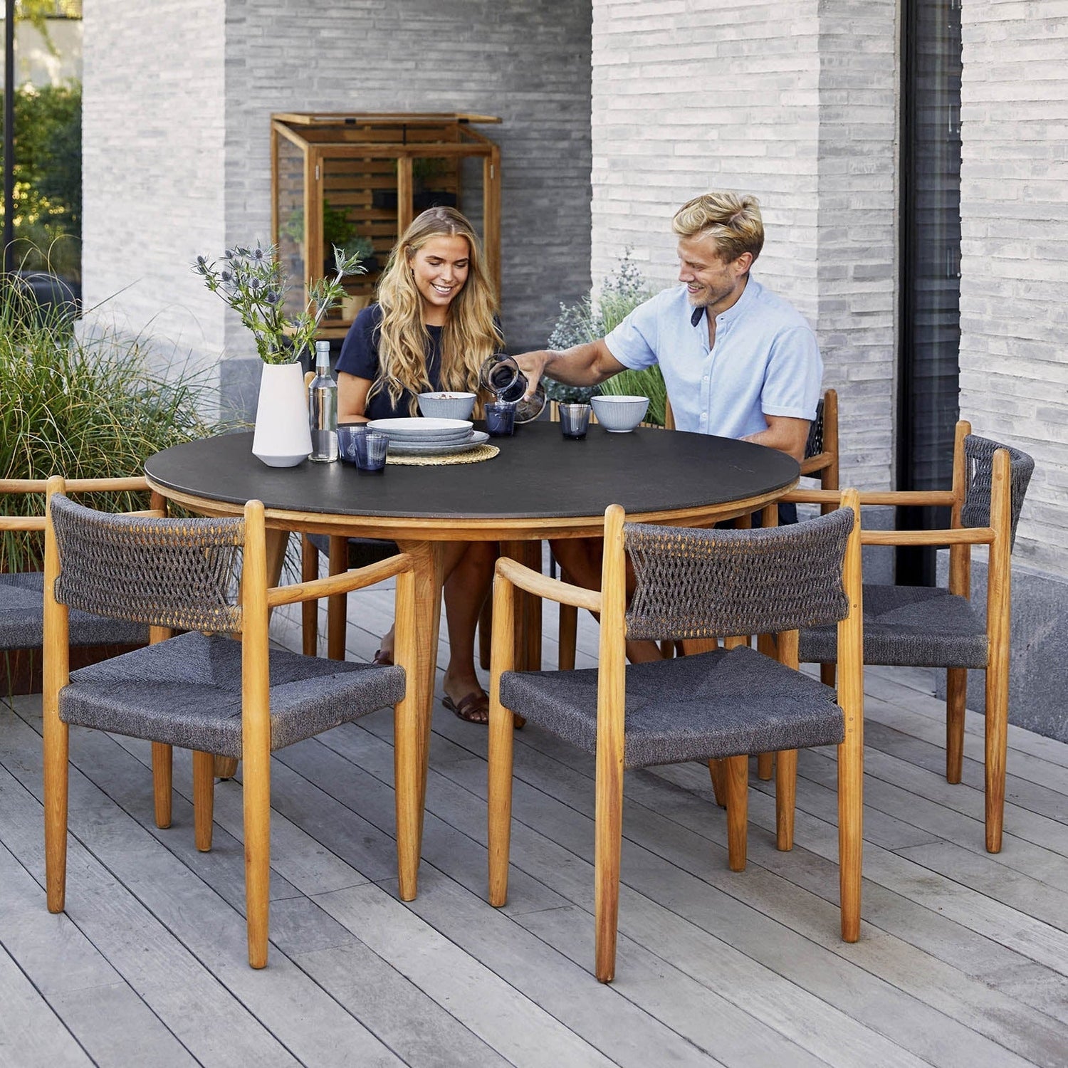 A Royal kerti széket a formatervező páros, a Foersom & Hiort-Lorenzen MDD tervezett. A Royal a klasszikus étkezőszék újraértelmezése, amely mostantól kültéri változatban is elérhető. Az étkezőszék a piacon kapható legkiválóbb tíkfából készül, elegáns és hagyományos Cane-line Soft Rope szövéssel kombinálva. A meleg, natúr színű fa és a puha szövés közötti kontraszt hívogató és esztétikus megjelenést kölcsönöz.