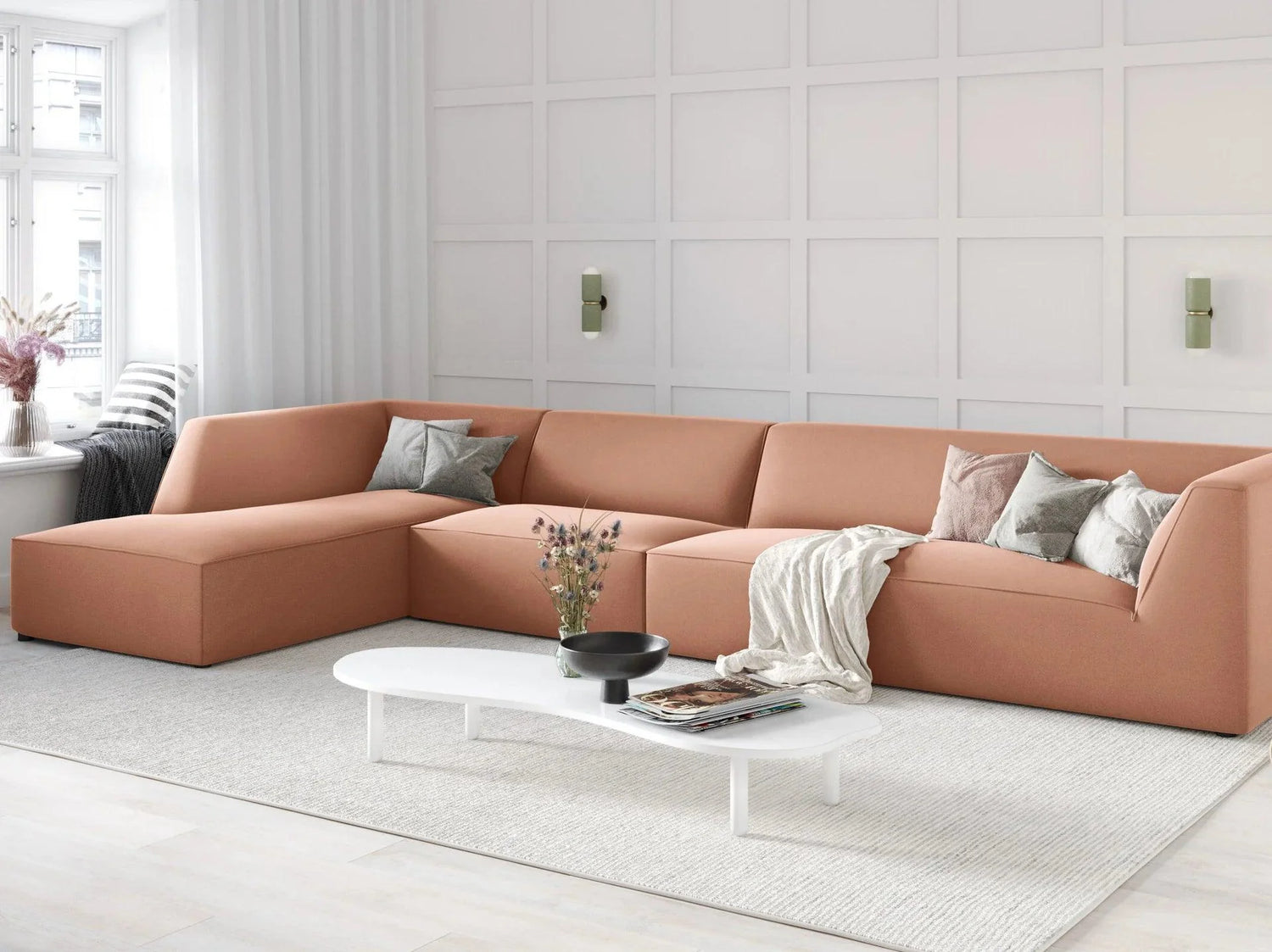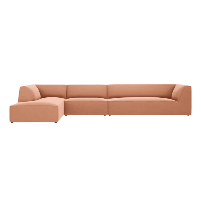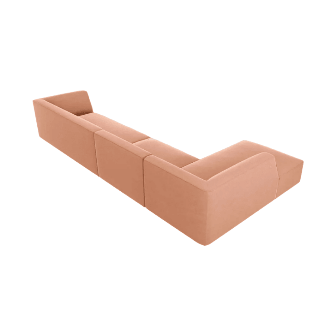 Ruby balos bársony sarokkanapé 366x180 - Rózsaszín utólagos megrendelésre kerül, és azonnal kiszállítjuk, amint újra raktáron van.