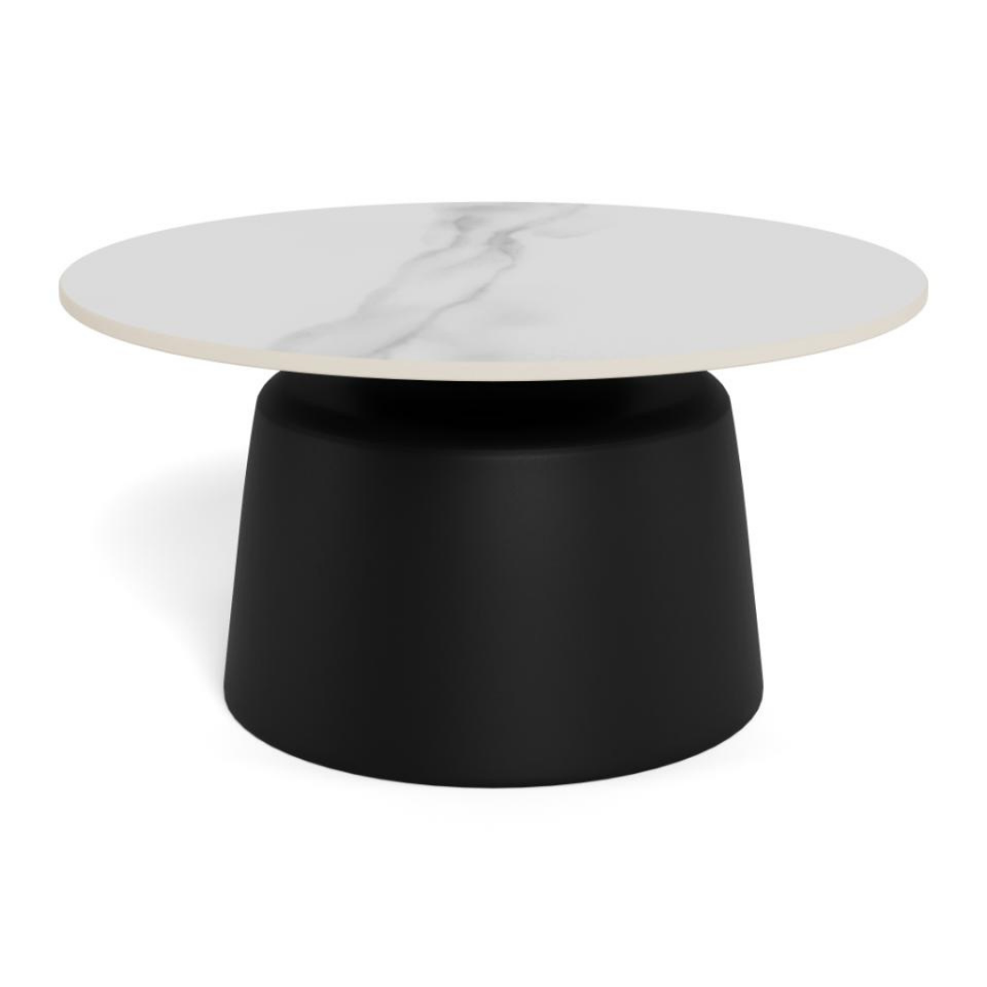 A kerek Santorini dohányzóasztal a fehér kerámia és a fekete fém talp kombinációjával alkot feltűnő kontrasztot. Mérete sokoldalúvá teszi, akár kiegészítőként egy közösségi térben, akár praktikus darabként a nappaliban, míg modern sziluettje mélységet és karaktert kölcsönöz bármely élettérnek. A Santorini lerakóasztal változatban is elérhető.