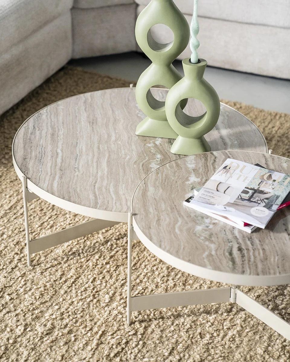 Sib márvány dohányzóasztal szettben - Bézs utólagos megrendelésre kerül, és azonnal kiszállítjuk, amint újra raktáron van.