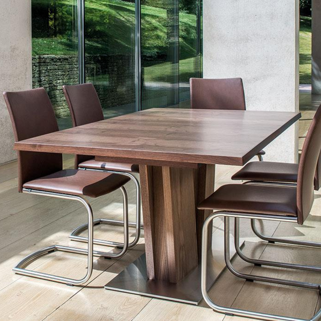 A Skovby 37 étkezőasztal jellegzetes dizájnnal, szoborszerű V-alakú talppal és dinamikus megjelenéssel rendelkezik. Ennek a talpnak az az előnye, hogy a székeket tetszés szerint helyezheted el az asztal körül anélkül, hogy az asztallábakat figyelembe kellene venni. A Skovby 37 alaphelyzetben hat fő befogadására alkalmas. Az asztal két kihúzható lappal rendelkezik, amelyek az asztallap alatt tárolhatók, teljesen kihúzva (276 cm) pedig tizenkét fő befogadására alkalmas.