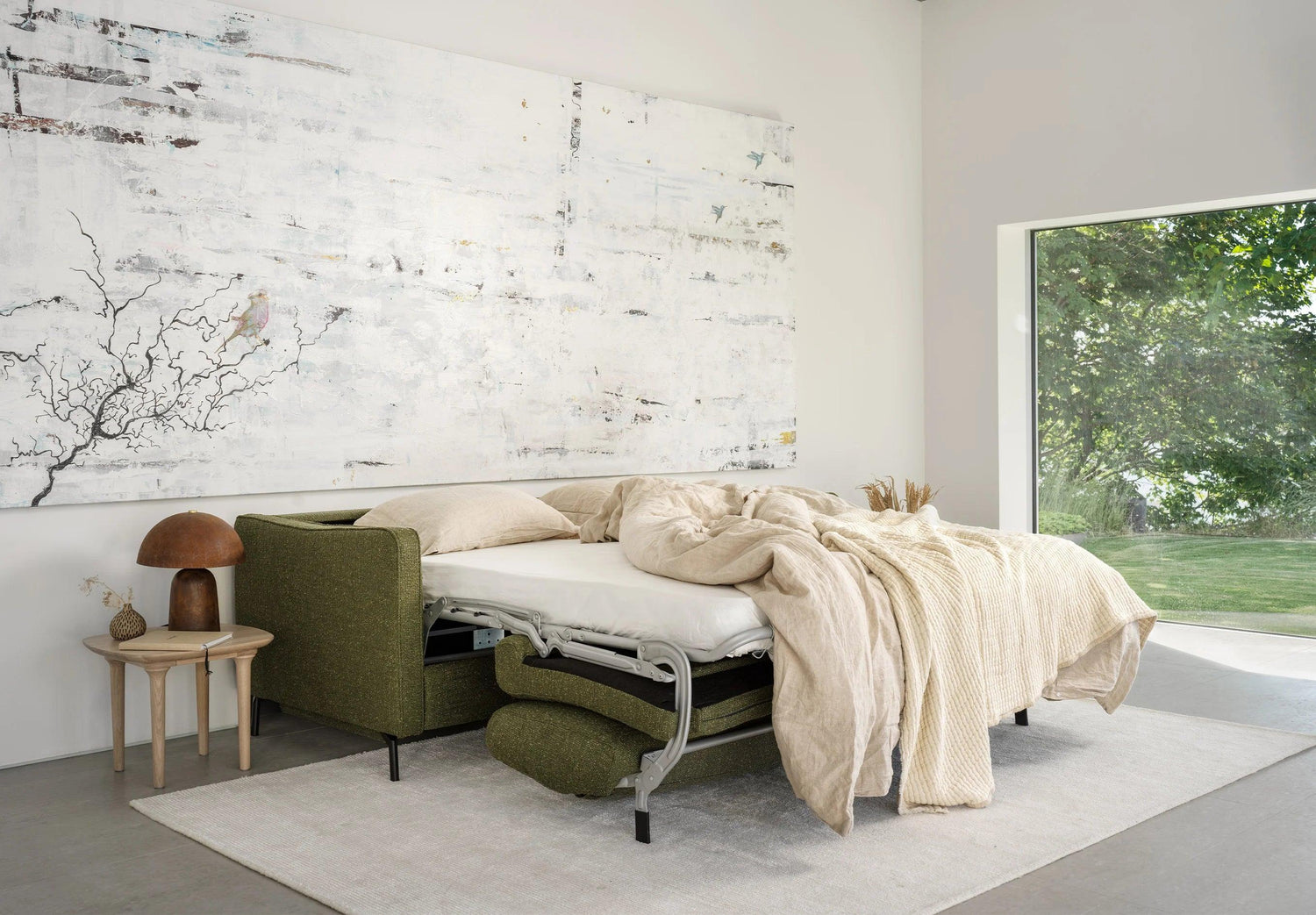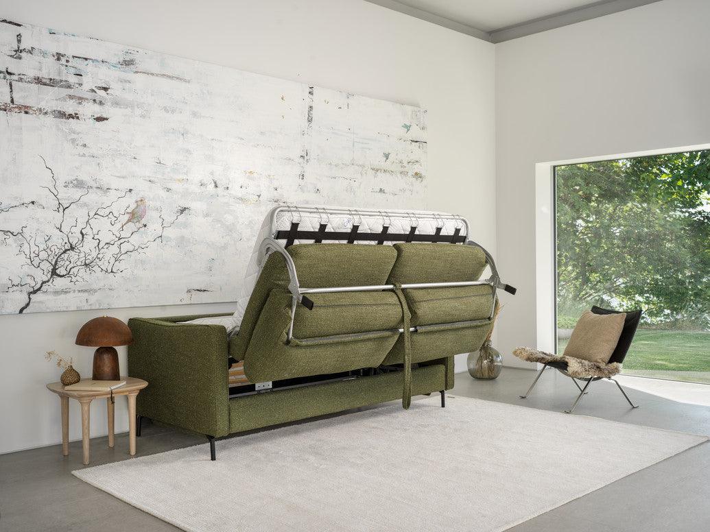 Sleepy egy elegáns kanapé kényelmes és kompakt ágyfunkcióval. Az ágymechanizmus egykezes húzással könnyen nyitható, a vastag matrac pedig a jó éjszakai pihenést szem előtt tartva készült. Mindemellett nappal egy kompakt, kényelmes dizájn kanapévá változik, egyszerű, tiszta vonalakkal.