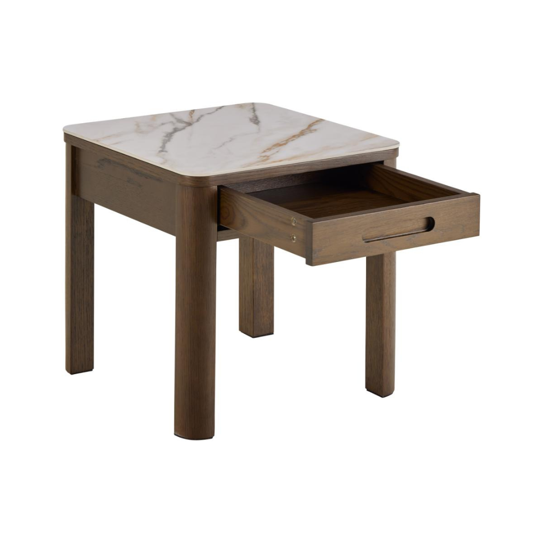 A füstölt tölgy furnér mély, gazdag árnyalata és a finom erekkel csiszolt kerámia vizuális látványt kelt, amely figyelemfelkeltő lehet bármely belső térben. A kerámia fedlappal és masszív, négyzet alakú lábakkal tervezett Southampton lerakóasztal kifinomultságával remekül kiegészítheti otthonodat. A fióknak köszönhetően pedig éjjeliszekrényként is megállja a helyét.