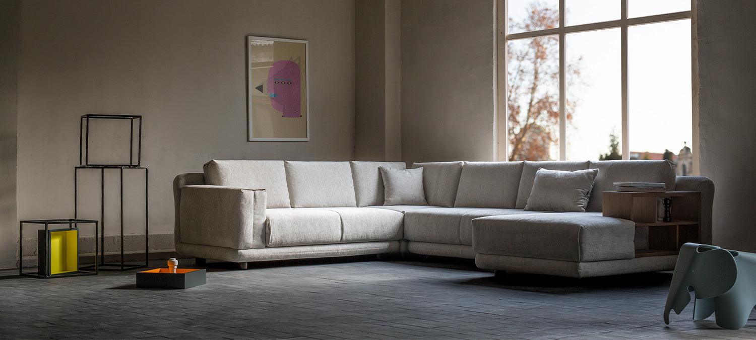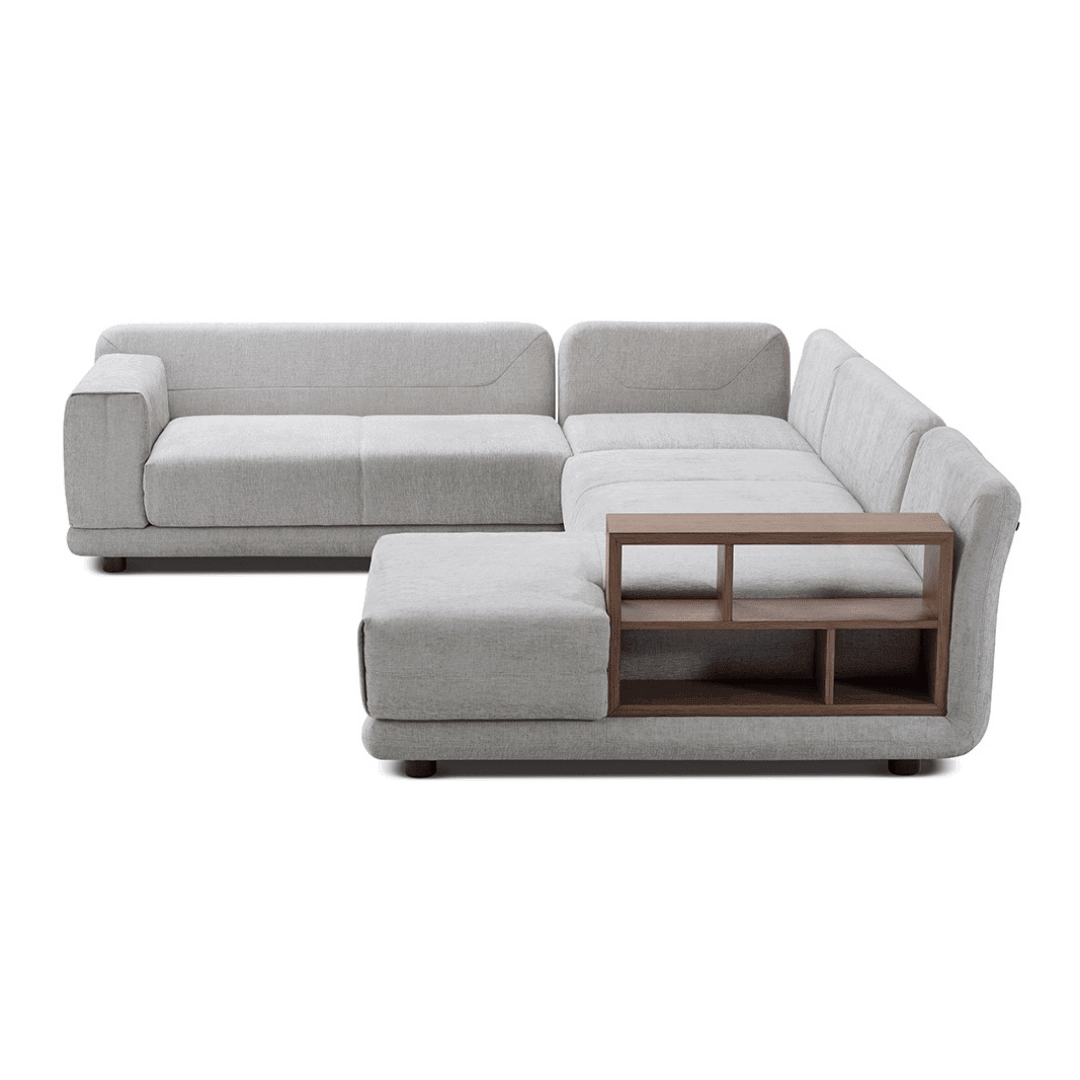 A Stage moduláris kanapé magas háttámlával rendelkezik, amely nagy párnákkal vagy anélkül is használható. Ennek a karakterisztikus otthoni bútornak az egyik jellemzője az oldalsó fa polcok behelyezhetősége. Válaszd ki egyénileg a méretet, szövetet és színt, hogy biztosan illeszkedjen a személyes igényeidhez, és a nappalid stílusához.