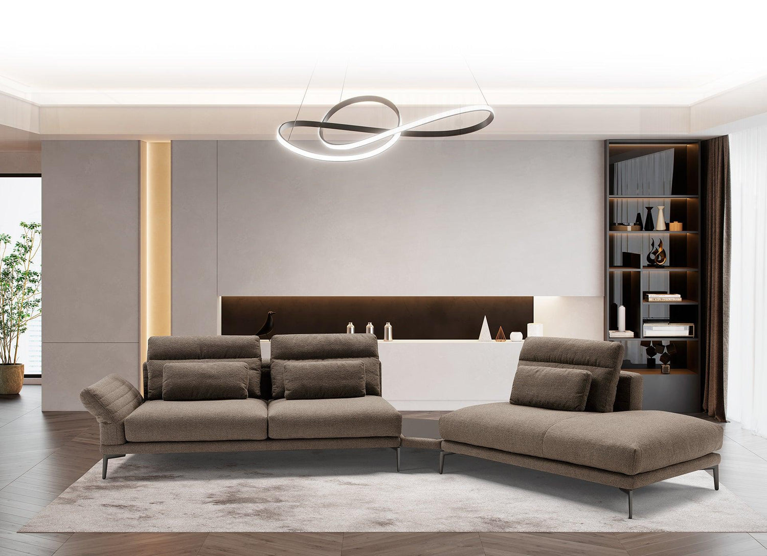 Sokoldalúság és dinamizmus jellemzi a Tenco moduláris kanapét, amely magasított lábakon áll és manuálisan állítható karfákkal rendelkezik. A vízszintes foltvarrással díszített bútor szövet és bőr kárpitozással is kapható. Dupla hátpárnákkal és kényelmes deréktámaszokkal van felszerelve a maximális kényelem érdekében. Opcionális tartozékként praktikus és funkcionális asztal is behelyezhető a modulok közé, mely üveg vagy fa lappal is elérhető.