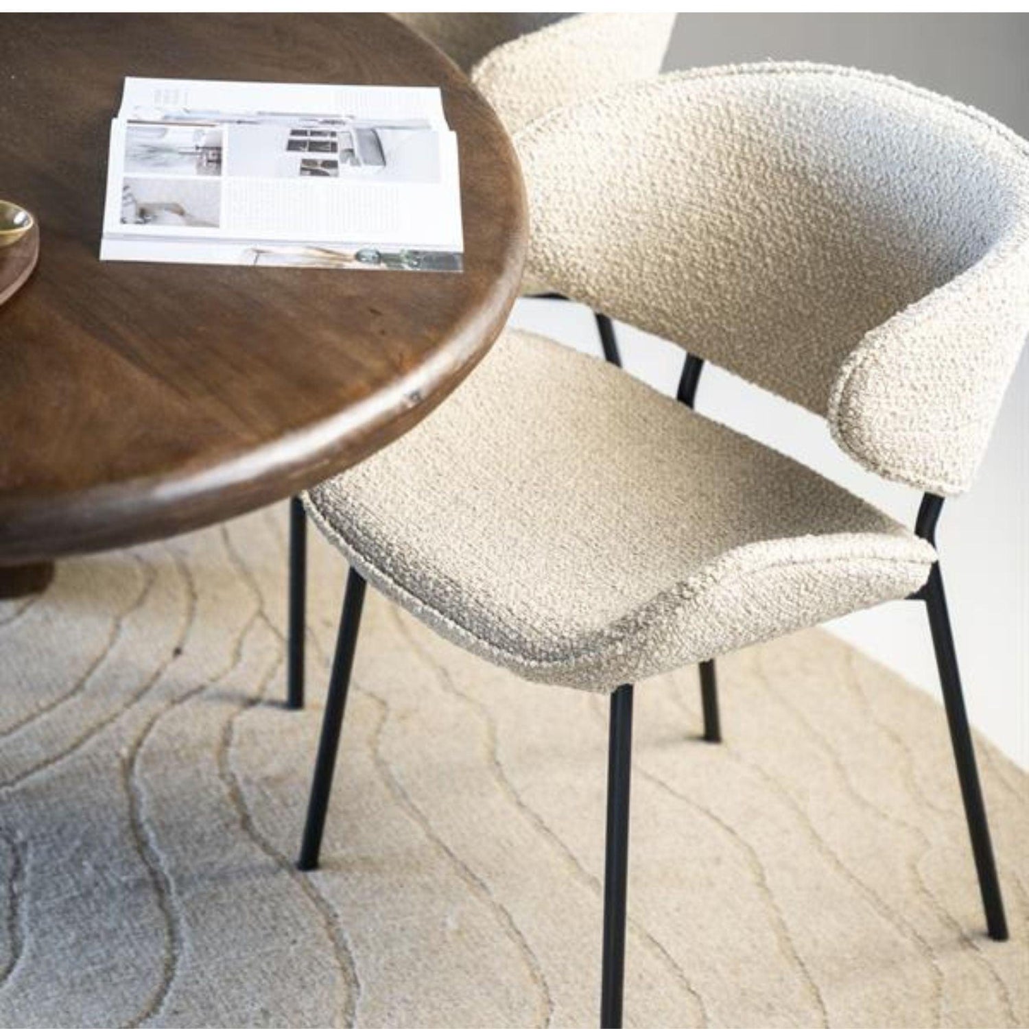 Ez a szék tökéletes választás, ha egy elegáns és stílusos bútordarabra vágysz. A 100% poliészter buklé szövet kárpitja nem csak esztétikus, de kényelmes is. A fekete porfestett fém lábak pedig modern és letisztult megjelenést kölcsönöznek a széknek. Az ülésmagasság és ülésmélység ideális kényelmet biztosít, míg a maximális terhelhetőség garantálja a tartósságot. Bármelyik szobában remekül mutat, legyen az nappali, hálószoba vagy iroda.