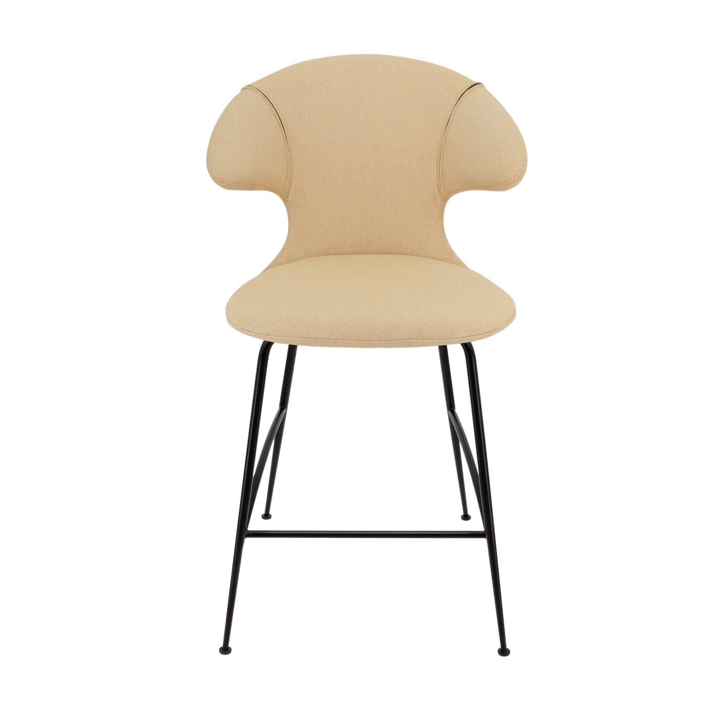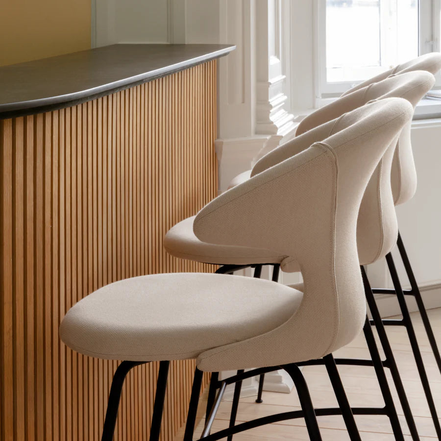 Egy kényelmes ülőhely a legjobb kiindulópont egy jó beszélgetéshez. A Time Flies bárszék feldobja a konyhapult vagy egy étterem bárjában folytatott beszélgetés színhelyét. A stabil háttámla és a lábtartóval ellátott lábak kombinációja nemcsak stílusos és rugalmas ülőalkalmatossággá, hanem kényelmessé is teszi a széket, több olyan környezetben is használható, ahol szükség van egy kis extra magasságra. A szék művészi körvonalú, karfákba simuló háttámlával tervezett, minden szögből puha és stabil háttámlát biztosítva. A Time Flies bárszék sárgaréz, króm és fekete lábakkal kapható a 100%-ban újrahasznosított Horizons textilhuzattal.