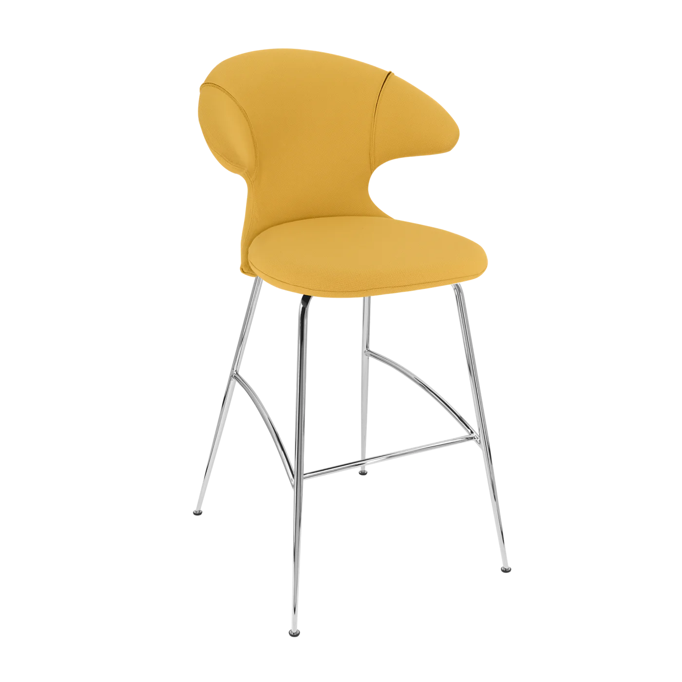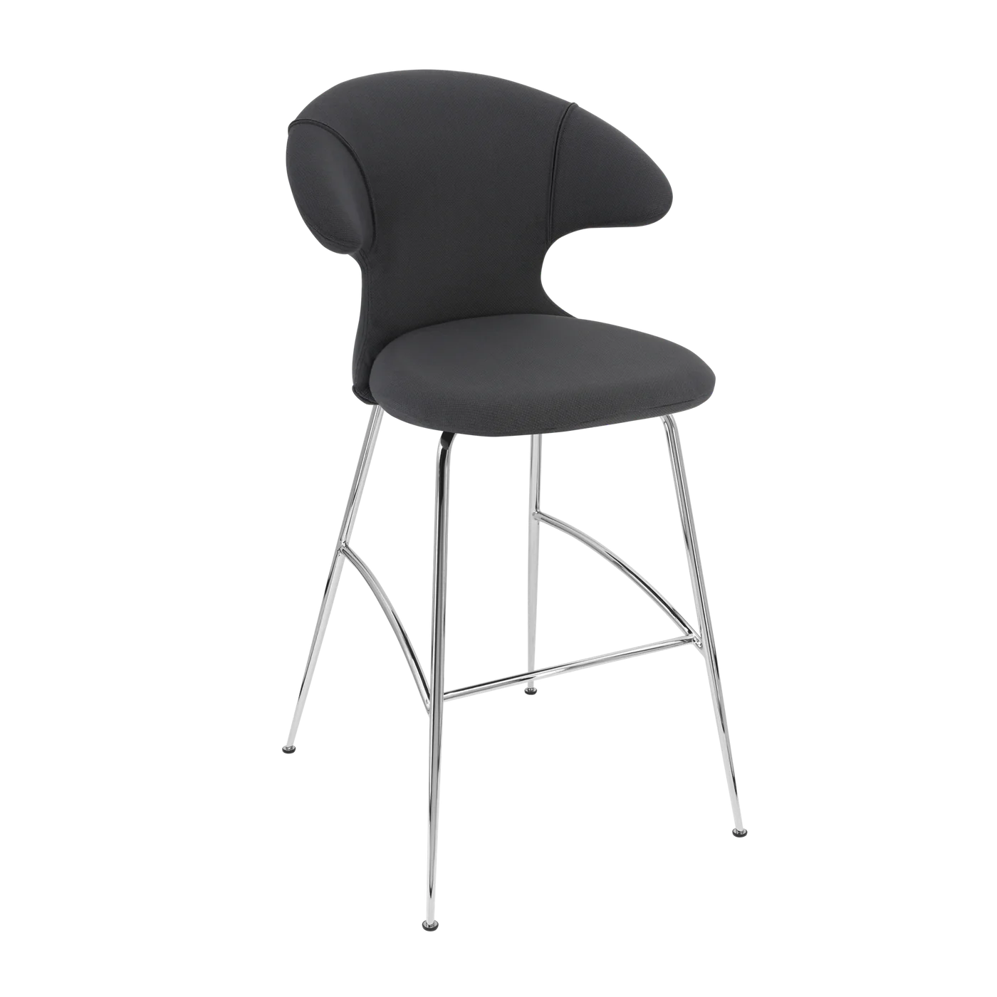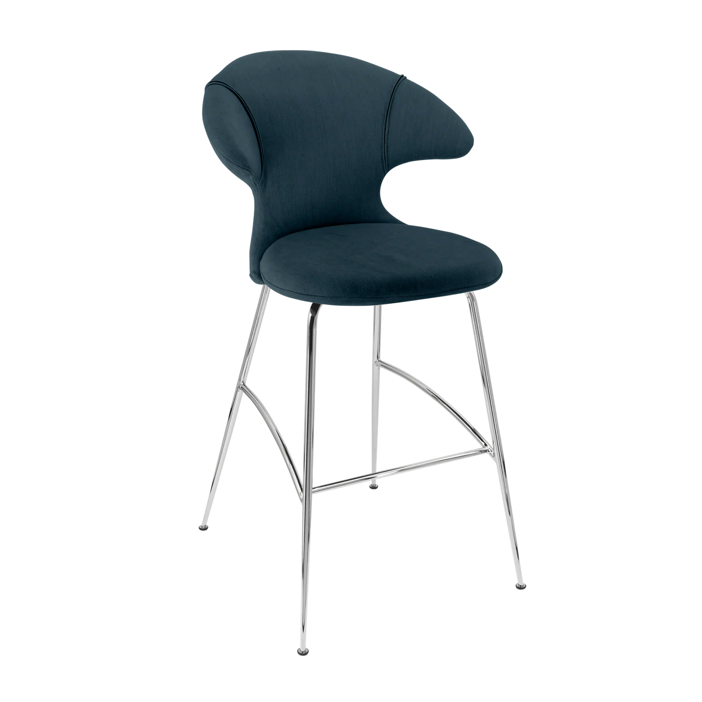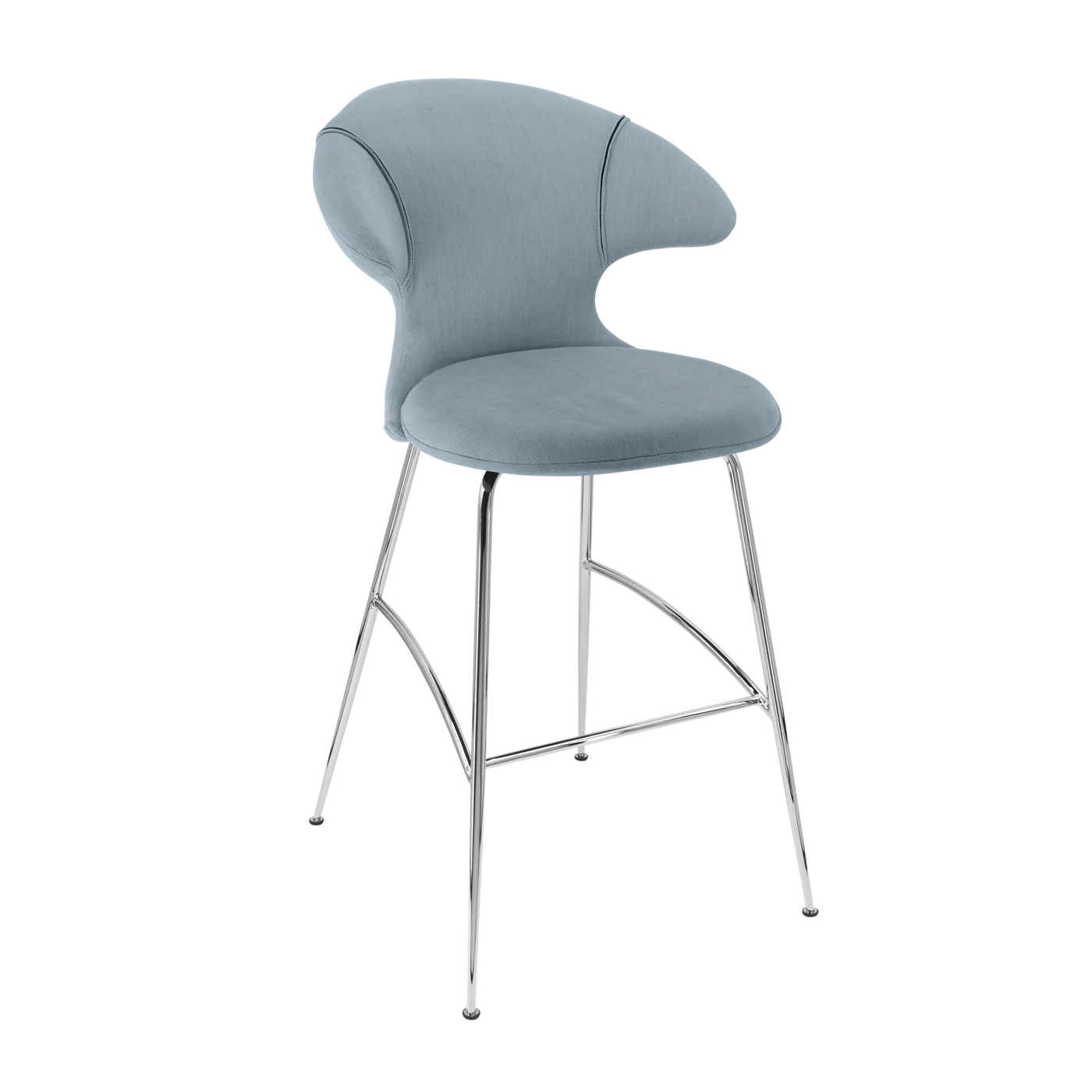 Egy kényelmes ülőhely a legjobb kiindulópont egy jó beszélgetéshez. A Time Flies bárszék feldobja a konyhapult vagy egy étterem bárjában folytatott beszélgetés színhelyét. A stabil háttámla és a lábtartóval ellátott lábak kombinációja nemcsak stílusos és rugalmas ülőalkalmatossággá, hanem kényelmessé is teszi a széket, több olyan környezetben is használható, ahol szükség van egy kis extra magasságra. A szék művészi körvonalú, karfákba simuló háttámlával tervezett, minden szögből puha és stabil háttámlát biztosítva. A Time Flies bárszék sárgaréz, króm és fekete lábakkal kapható a 100%-ban újrahasznosított Horizons textilhuzattal.